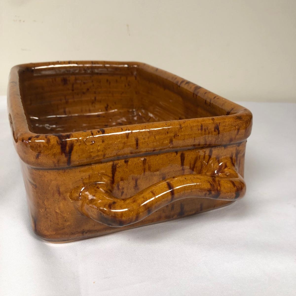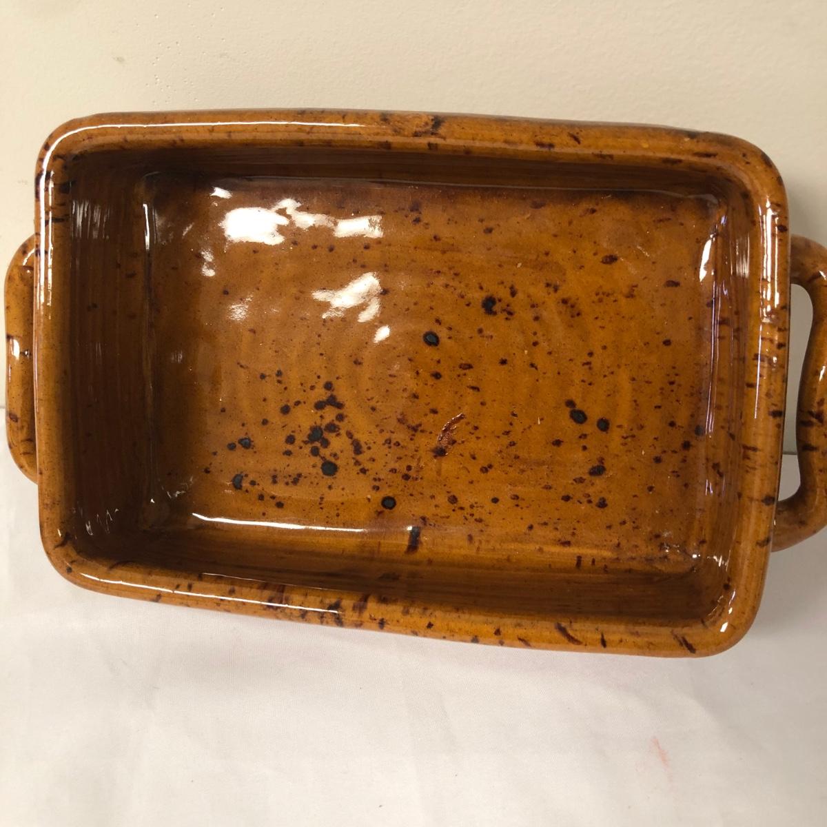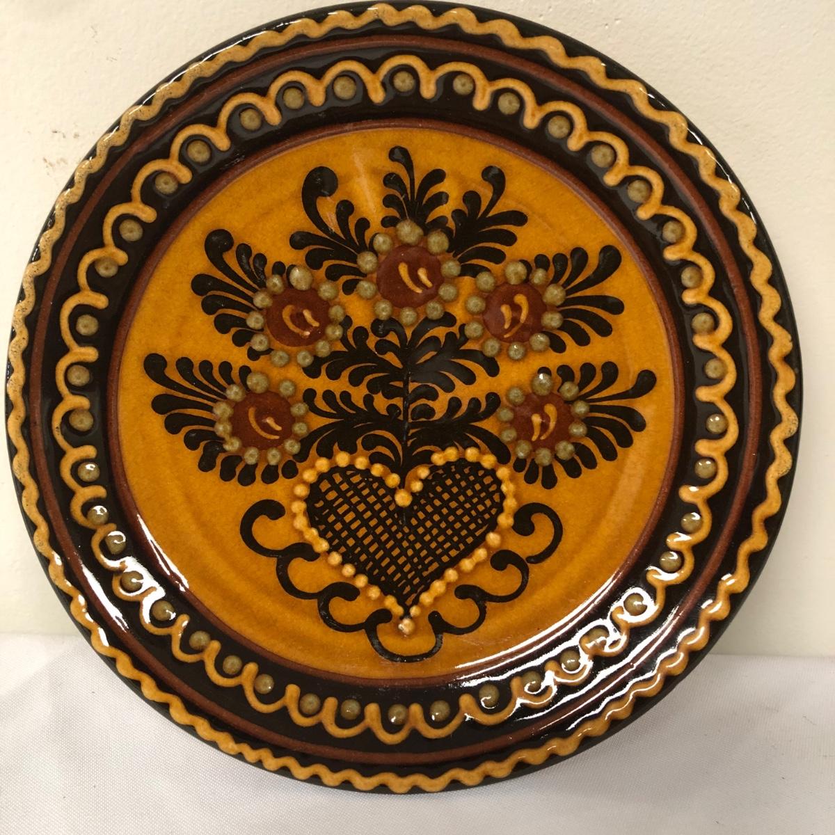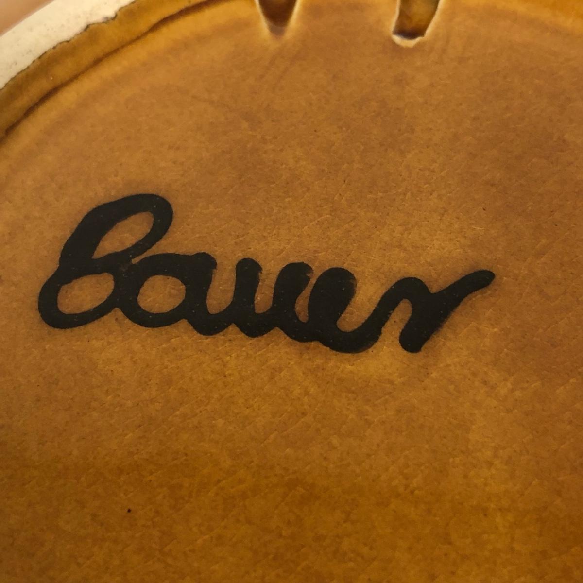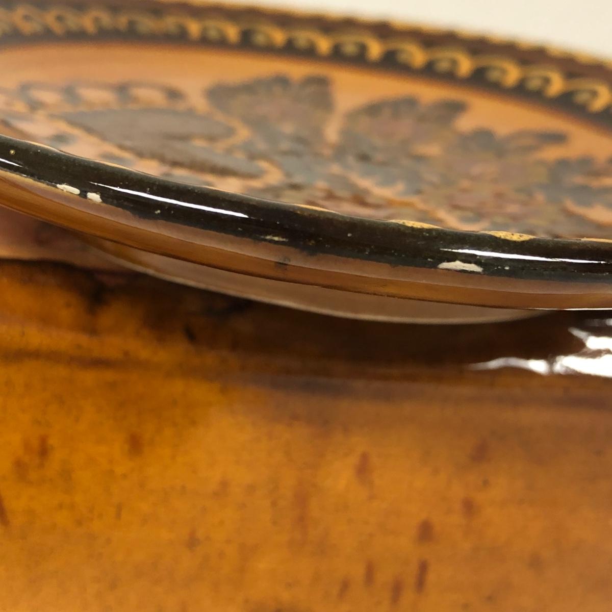 This lot includes two pieces of pottery: one rectangular dish (11.5” x 8”) stamped RK Wachau and a plate (7.5” in diameter) that appears hand painted and appears to have the name of “Bauer” painted on the back. The plate has two holes on the back to facilitate wire for hanging. Also, note there are three small marks on the edge of the plate where the paint/glaze has chipped off. Shipping Available.