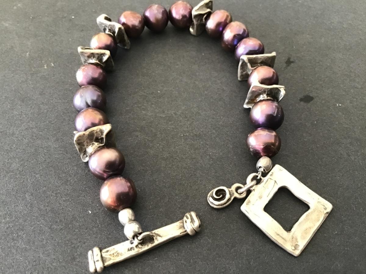 RM Signed Vintage Pearl TOOGLE Bracelet