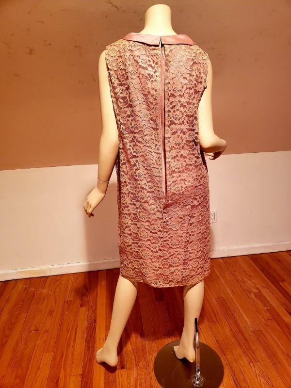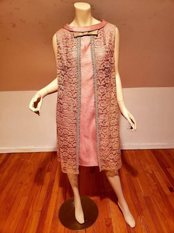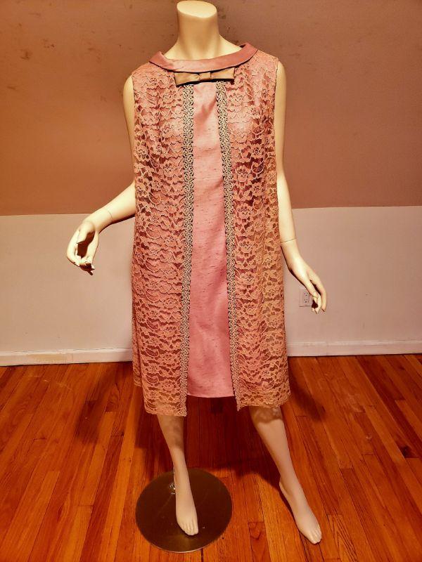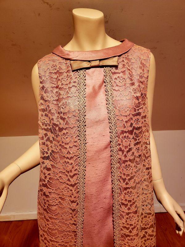 beautiful antique lavender sheath dress with lace panel wings and front bow.