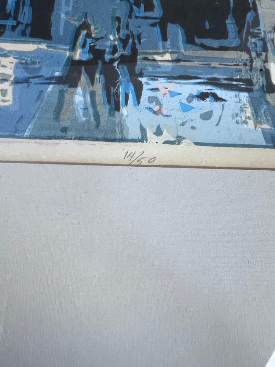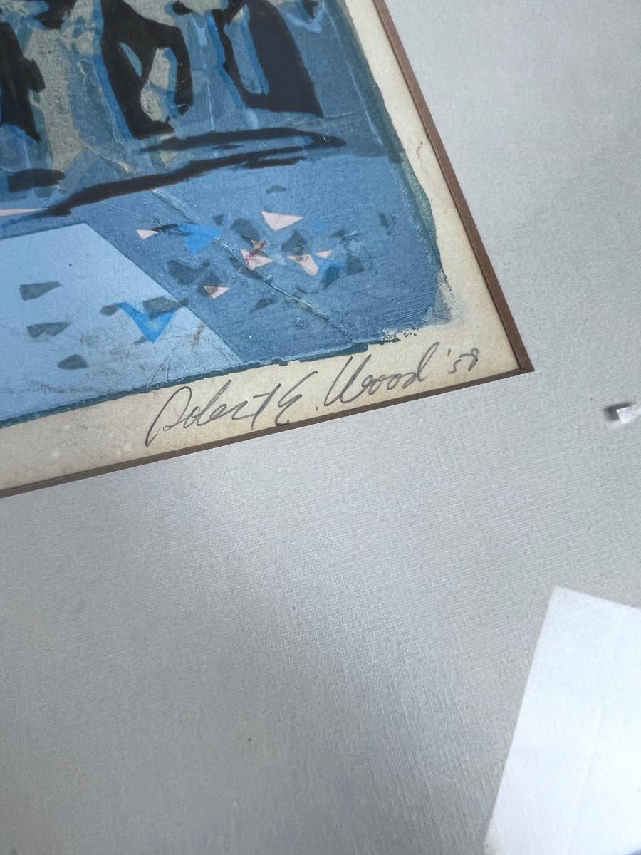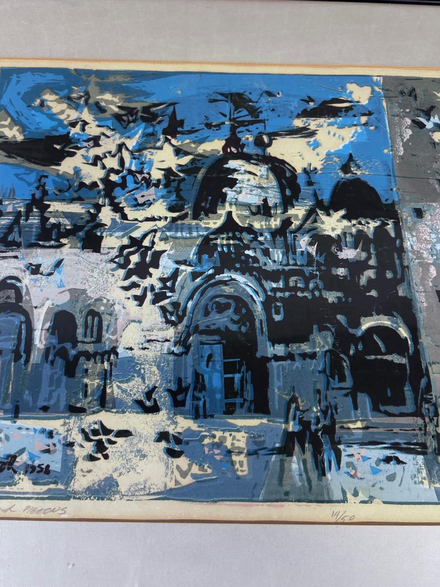 Robert E Wood Limited Serigraph Framed under Glass Title St. Marks and Pigeons Artist Signed.