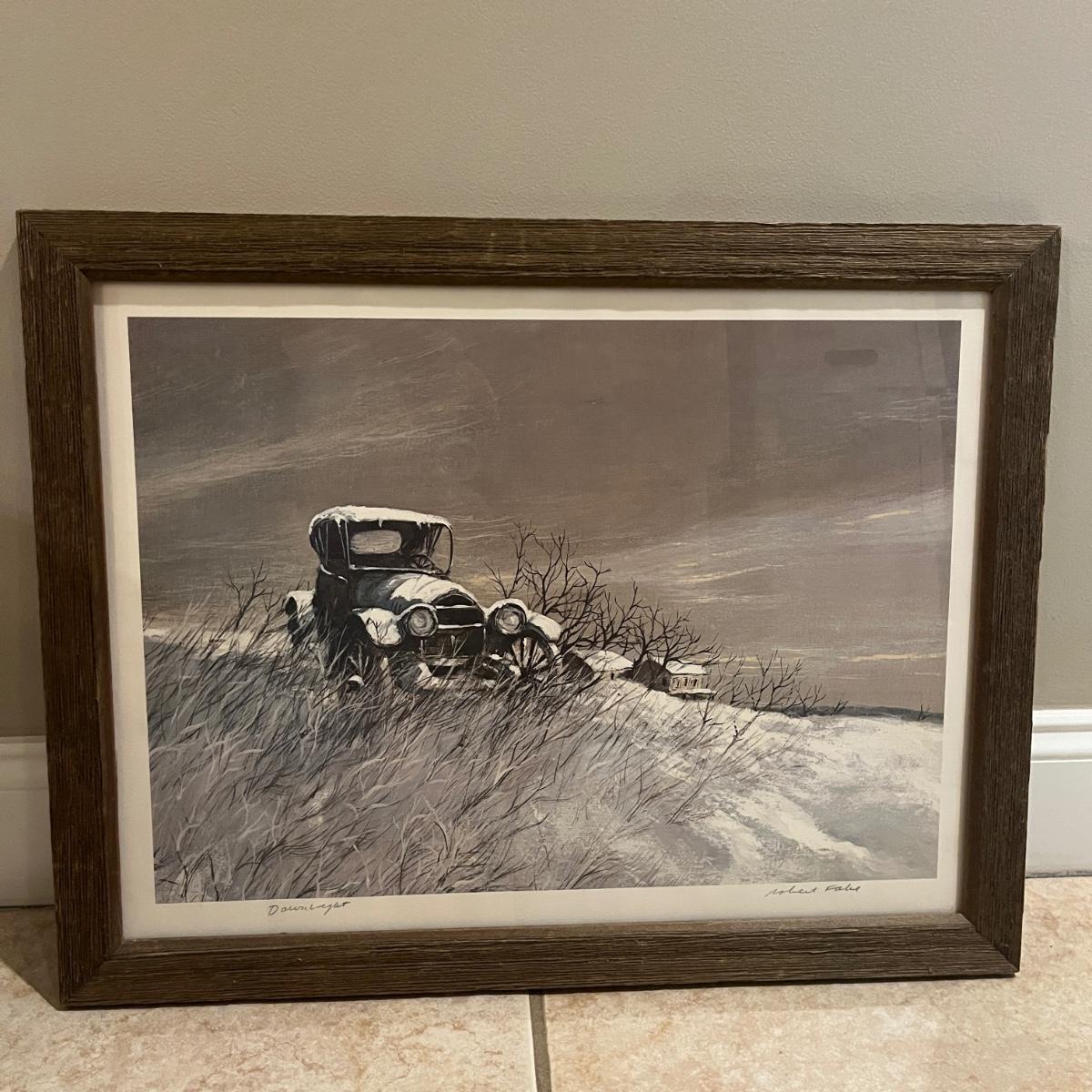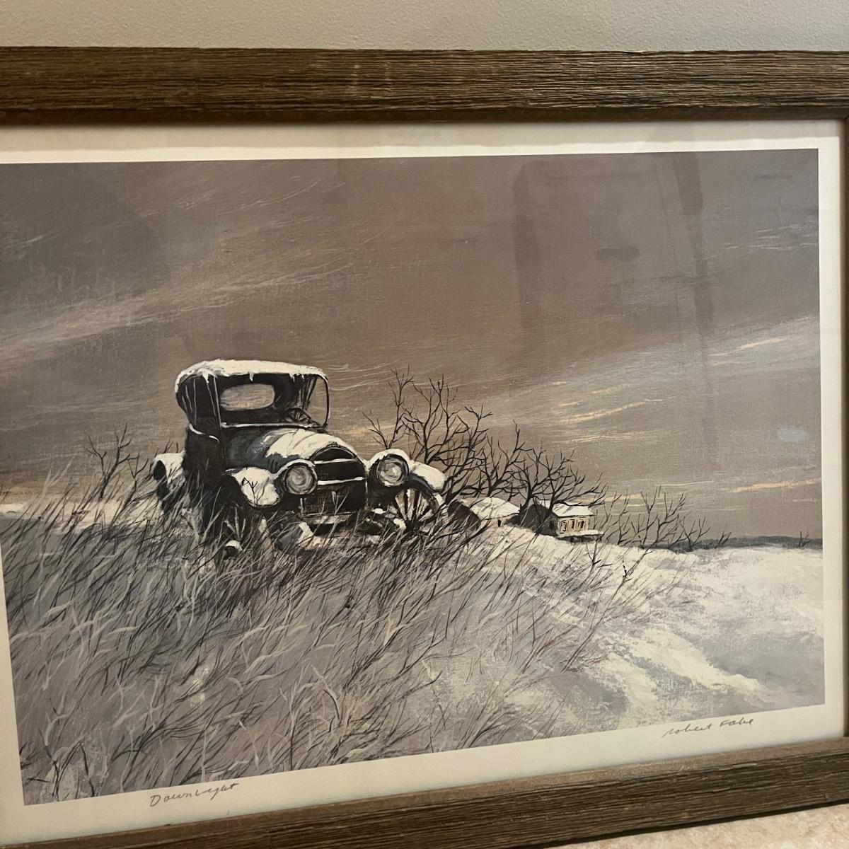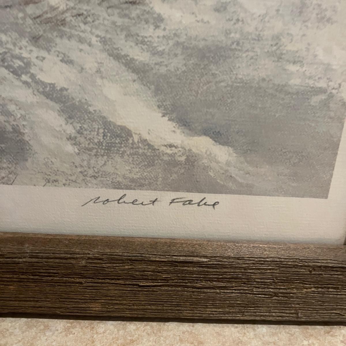 Lot includes a Wooden framed under glass Robert Fabe pencil signed print titled “Dawn Light”. Frame measures 24” x 19”H.