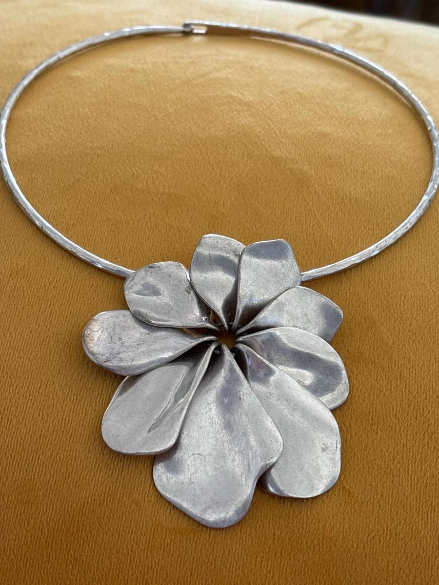 Robert Lee Morris, Soho, flower pendant wire collar necklace
