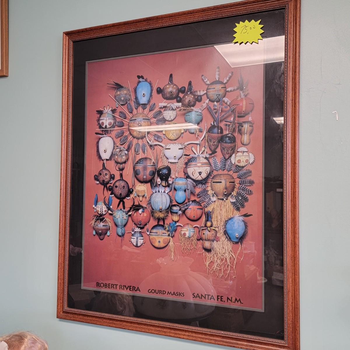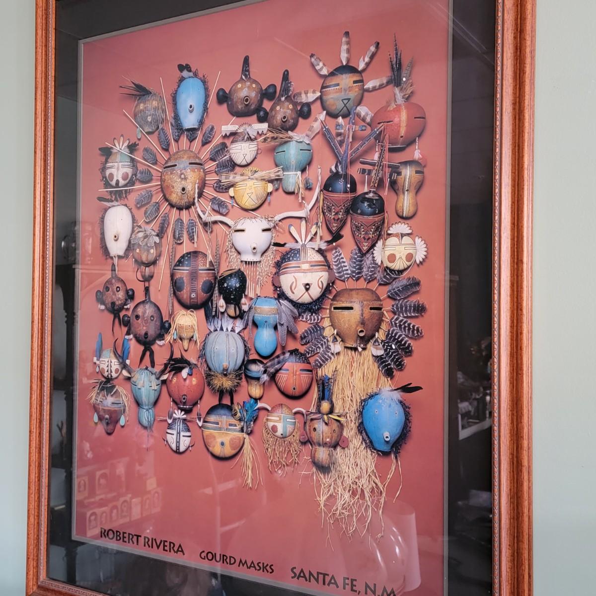 Robert Rivera "Gourd Masks" Framed Print featuring many different regional masks.