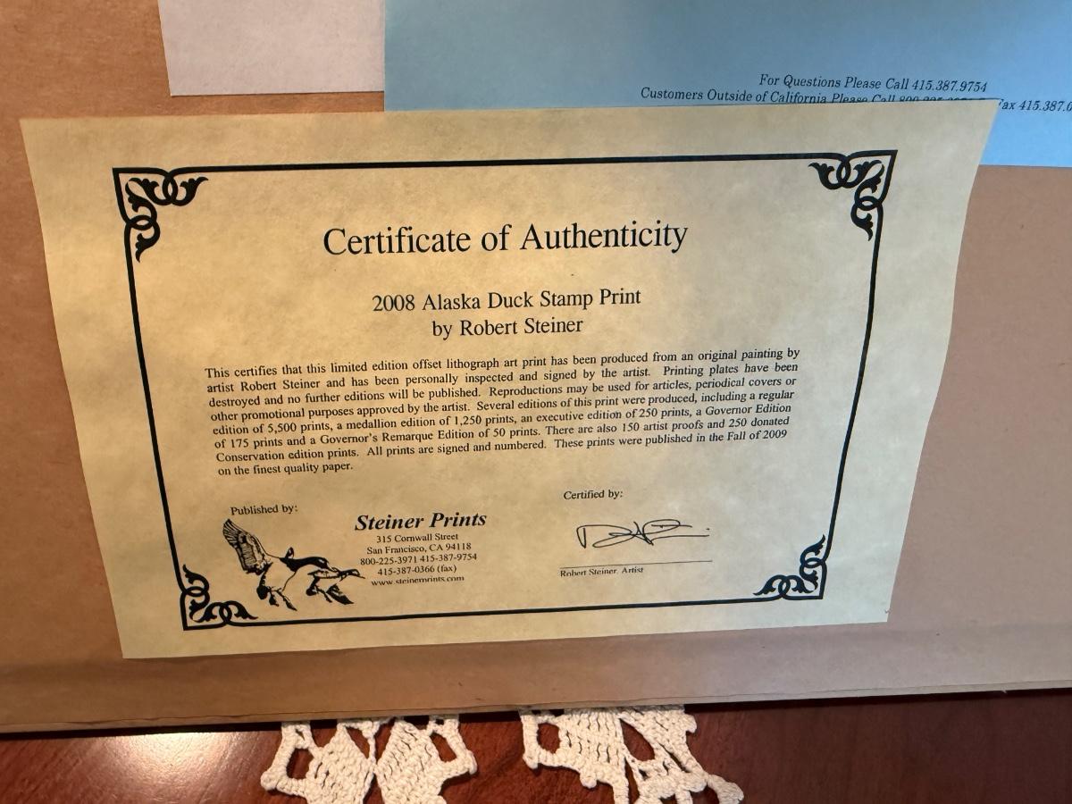 Robert Steiner Alaska Duck Stamp Print w/Sarah Palin signatures