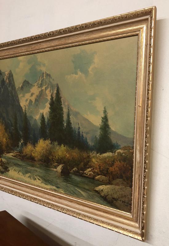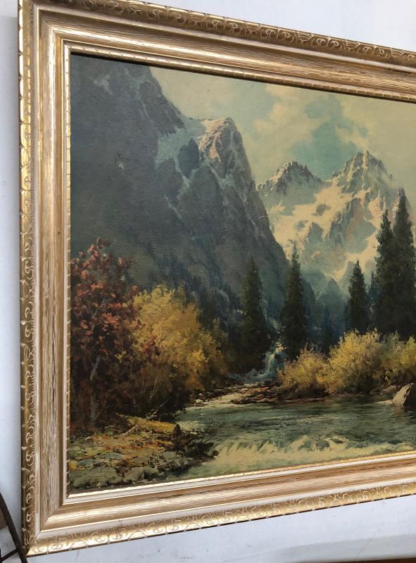 Here is a large vintage landscape print of an oil by Robert Wood in the 1950's entitled "Snake River:"...Large 29 x 41"...Framed...Normal use wear...