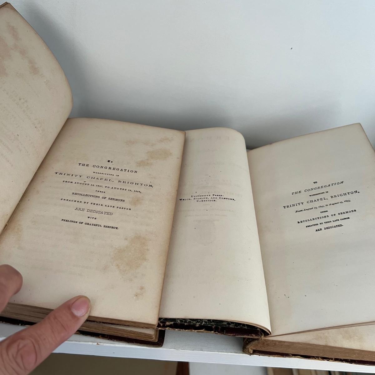 Seven books total includes volumes 1-5 Robertson’s Sermons and volumes 1-2 of Robertson’s Life and Letters. See images for more information and condition; these books are very old and quite delicate, there is staining of pages.