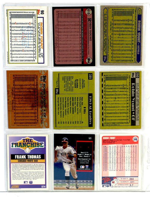 ROBIN YOUNT Frank Thomas BASEBALL CARDS SET OF 9 - EX/MINT
