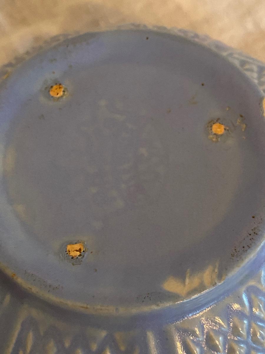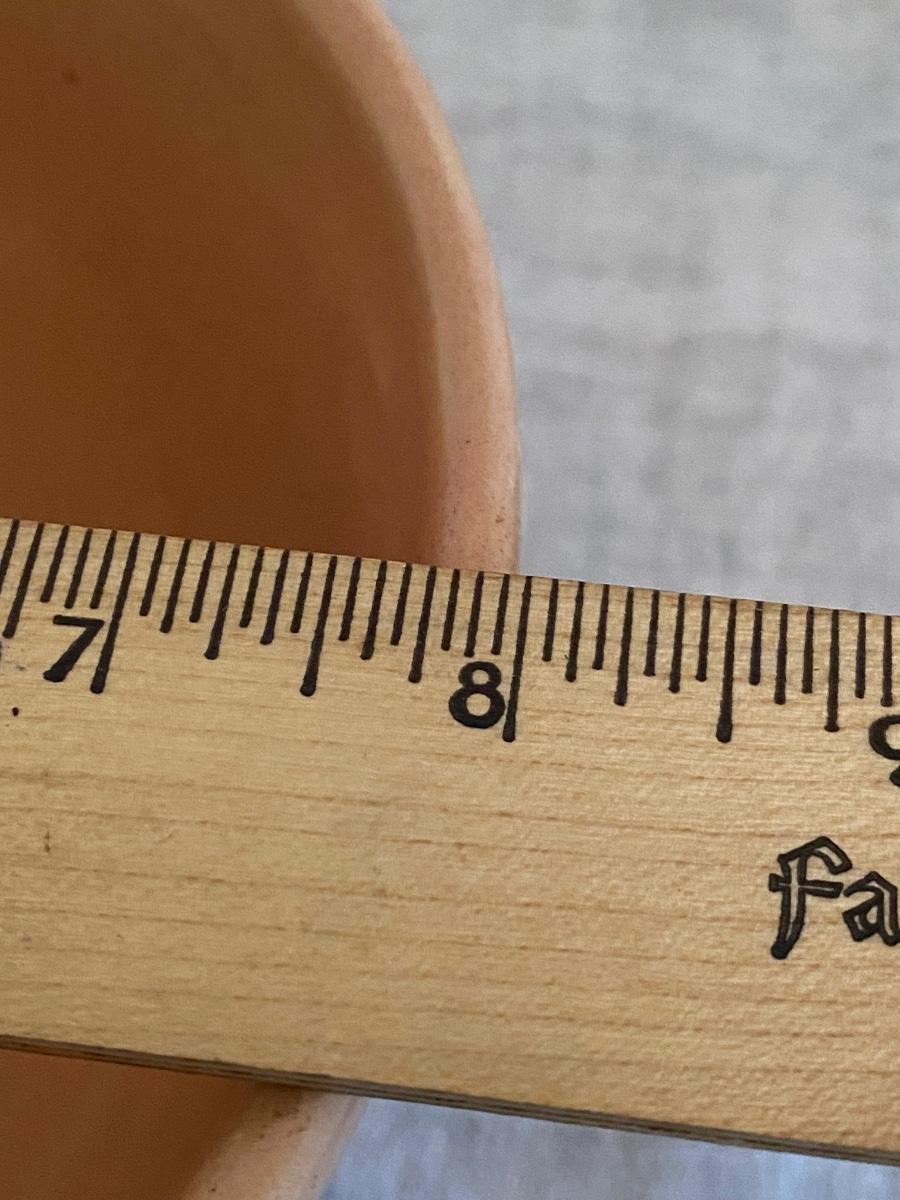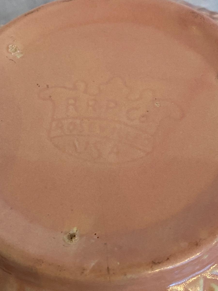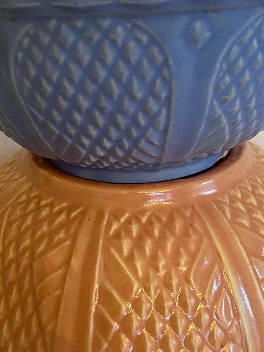 Robinson Ransbottom 8 and 6.5" inch Bowls, Diamond Hobnail. Has a pretty raised diamond hobnail design and warm glaze. The bowl is in vintage condition with signs of past batters stirred, but no cracks or chips.