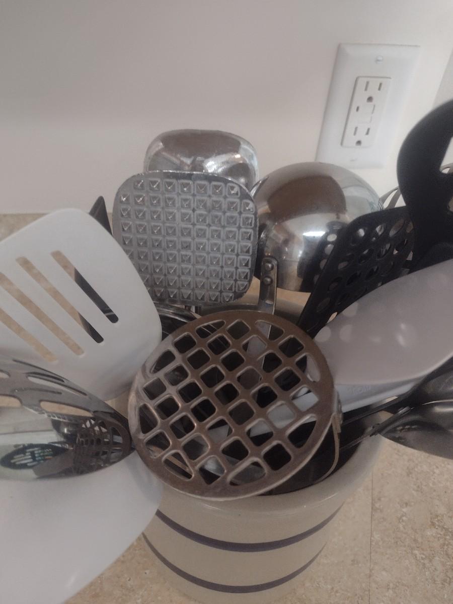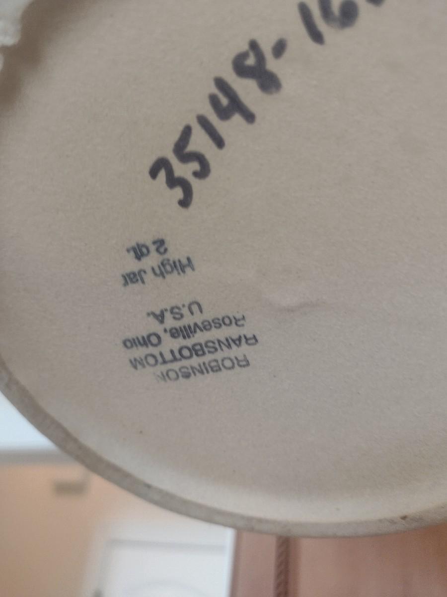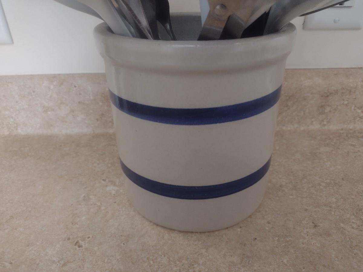 Robinson Ransbottom Pottery Crock with Kitchen Utensils