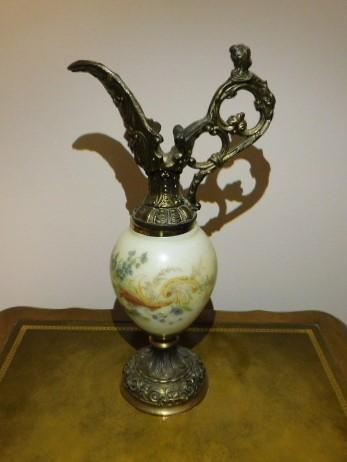 Roccoco Pitcher with Ceremic Hand Painted Belly 14"