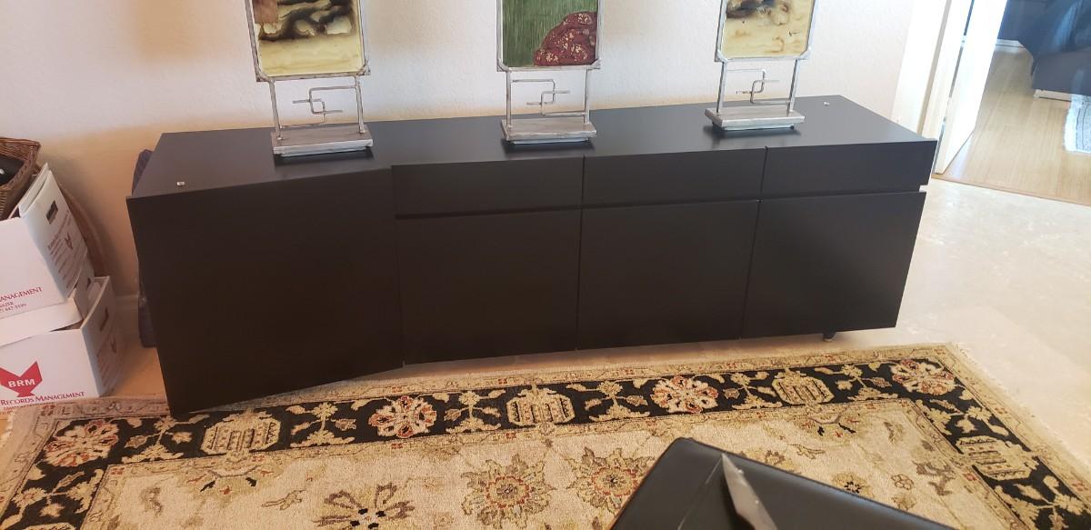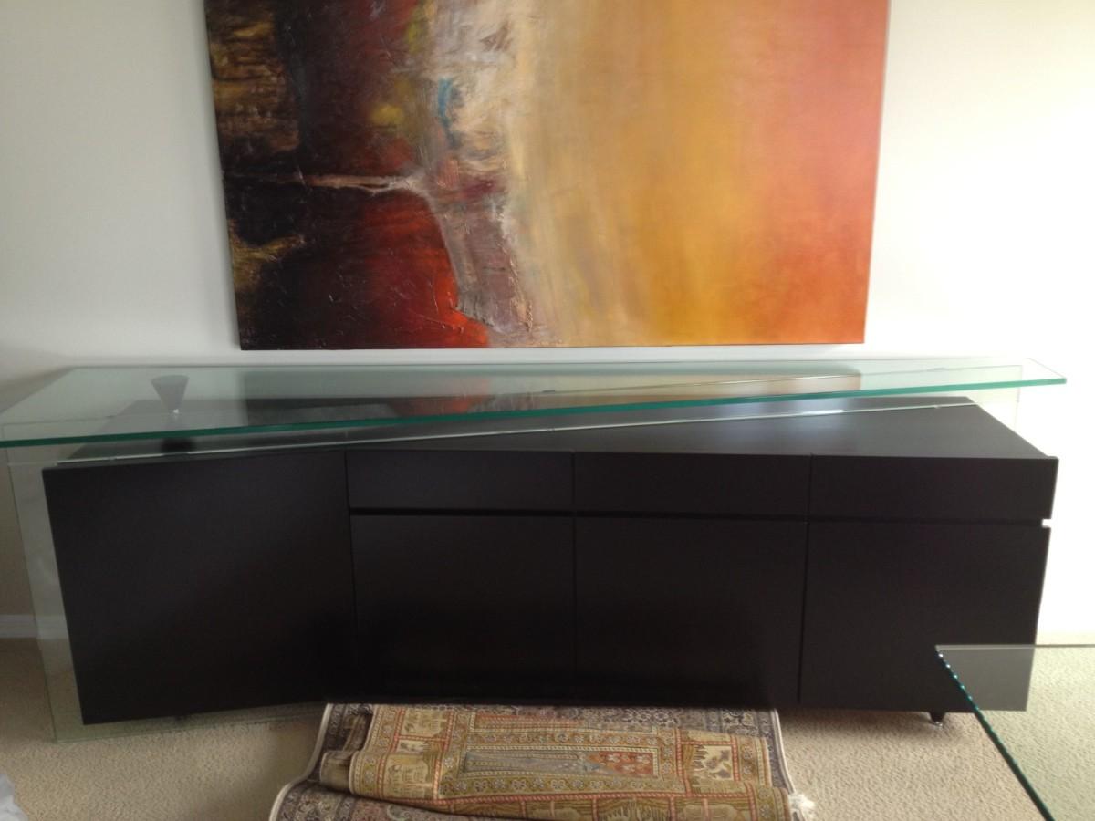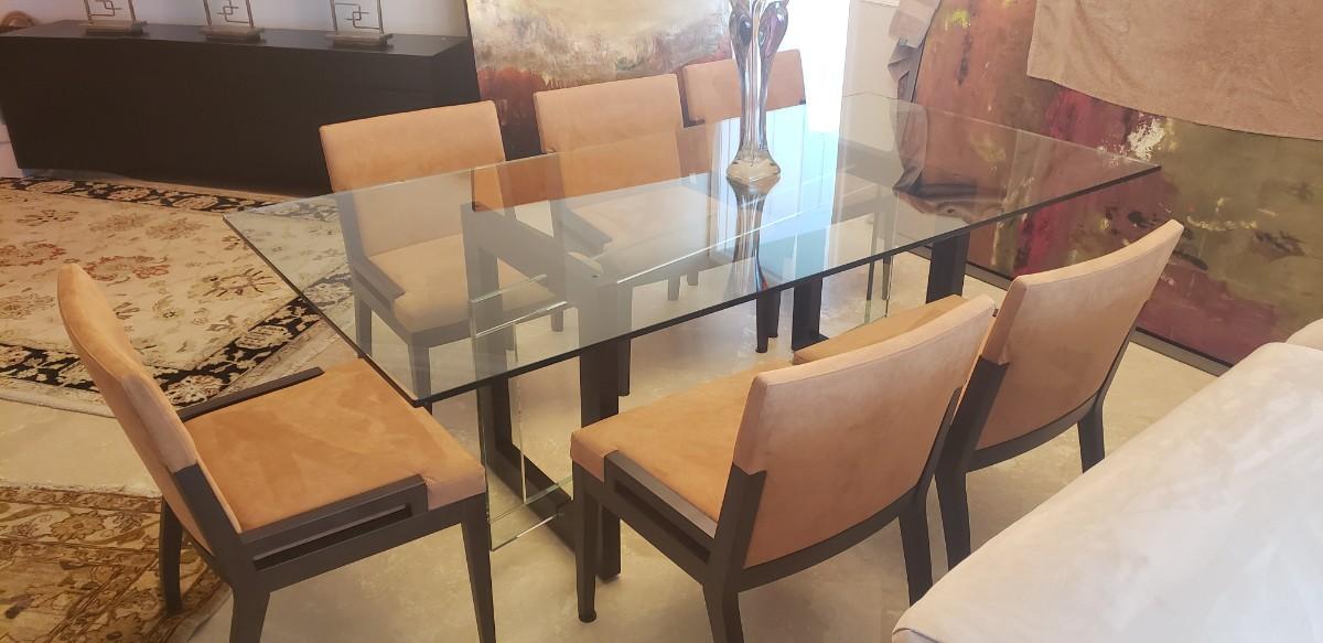 Roche Bobois Glass Dinning Table with 6 Chairs and Black Roche Bobois Buffet