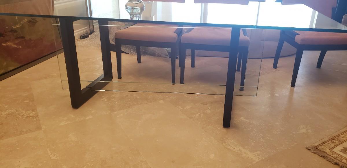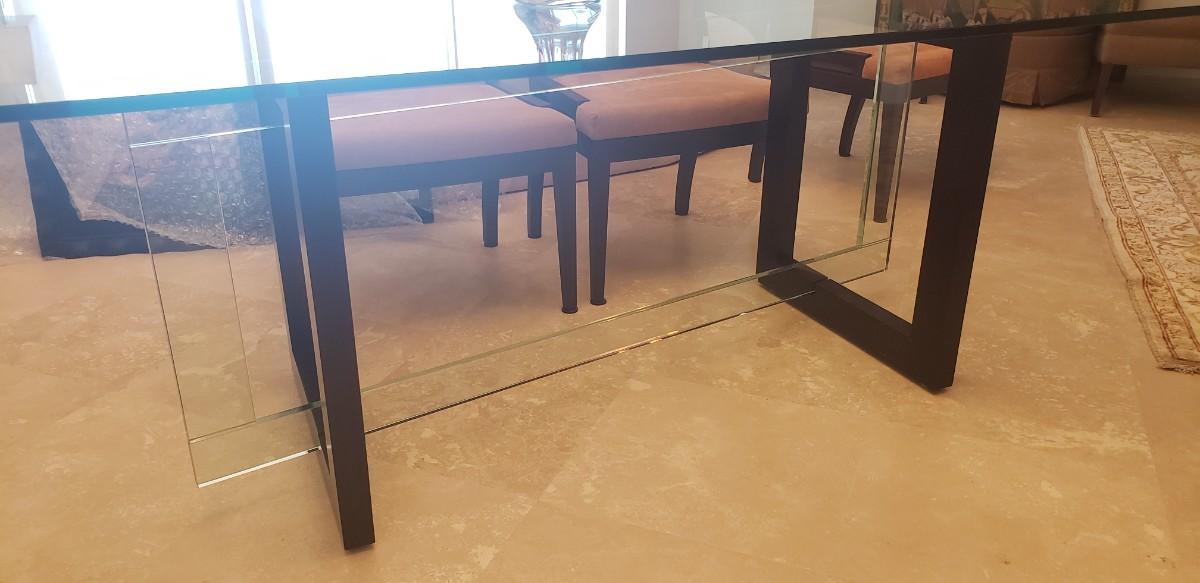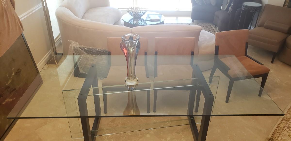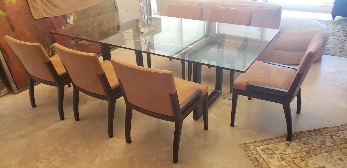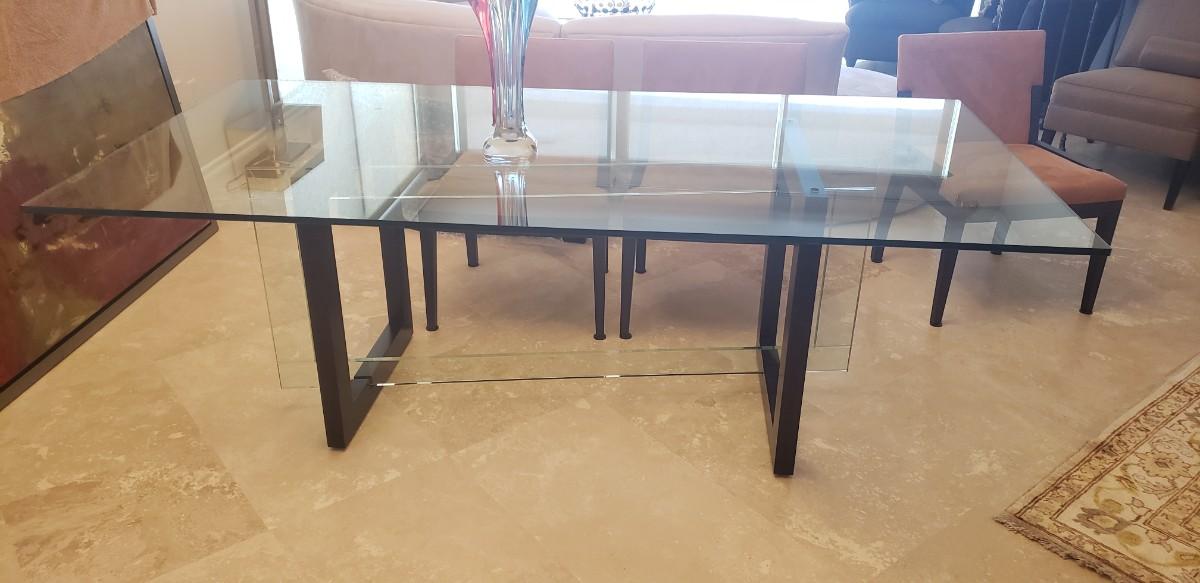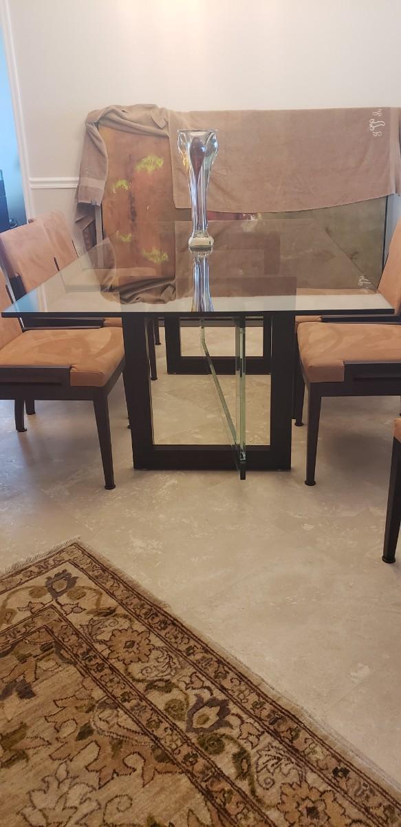 *** This lot includes Glass Dinning Table, 6 Chairs, a black Buffett with glass top. The glass piece that surrounds the buffet is not part of this lot. You will need to order that piece directly from the manufacture. Both Pieces are from The Roche Bobois Furniture Company ***