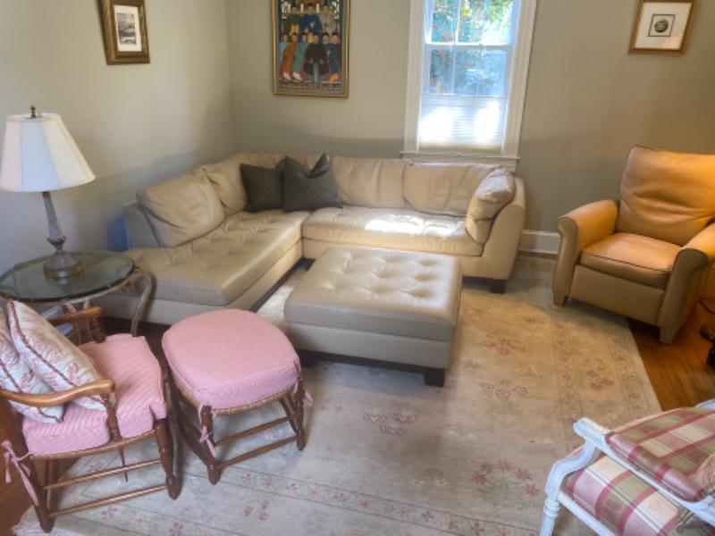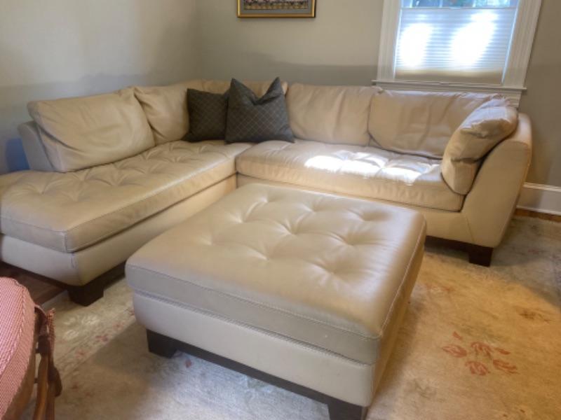Beige Roche Bobois Leather Sectional Sofa and Ottoman