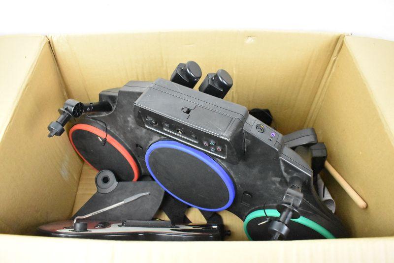 Rock Band Drums & 2 Guitars. Untested, As Is, No game disc included