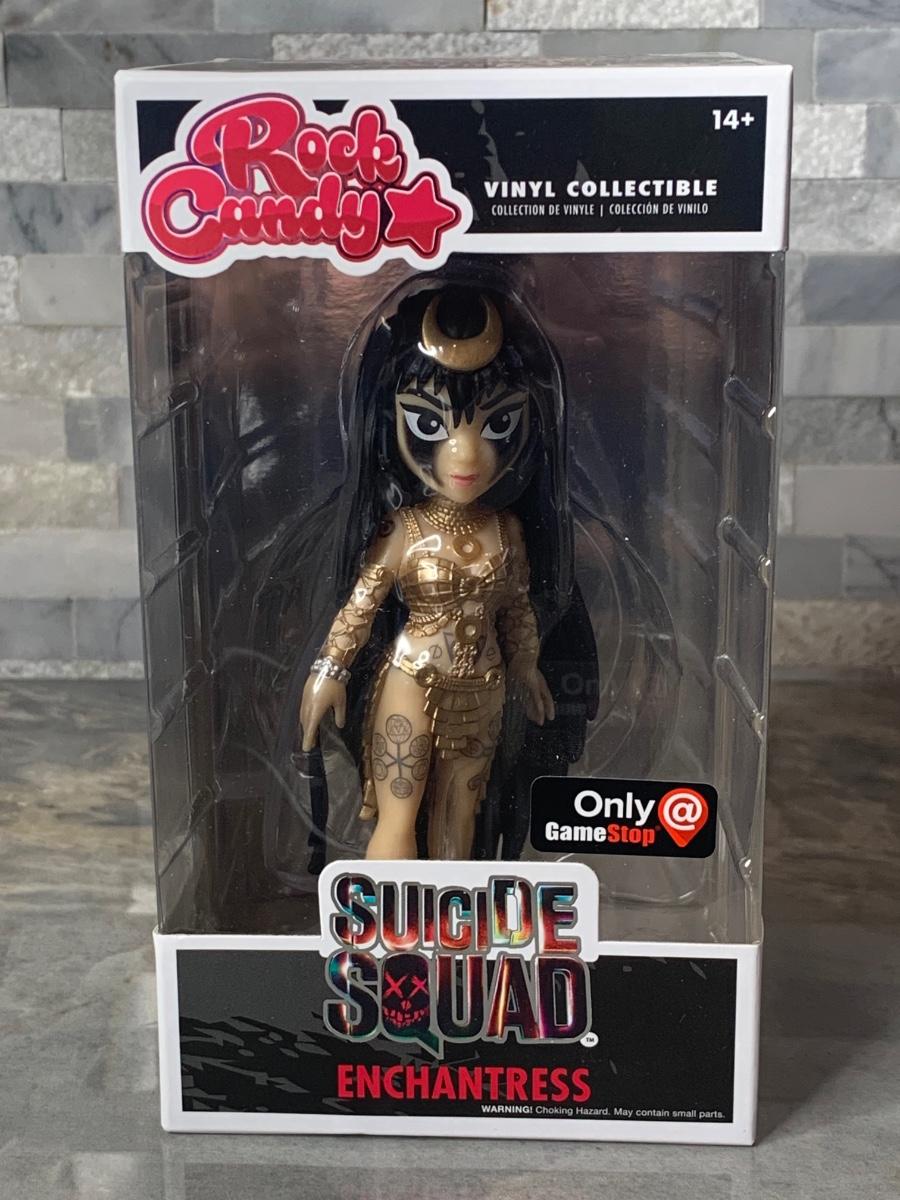 This delightful piece is a action figure "Enchantress," from the Suicide Squad and DC Comics. New in the original box. From the Rock Candy Vinyl Collectibles.