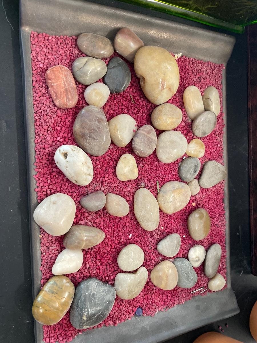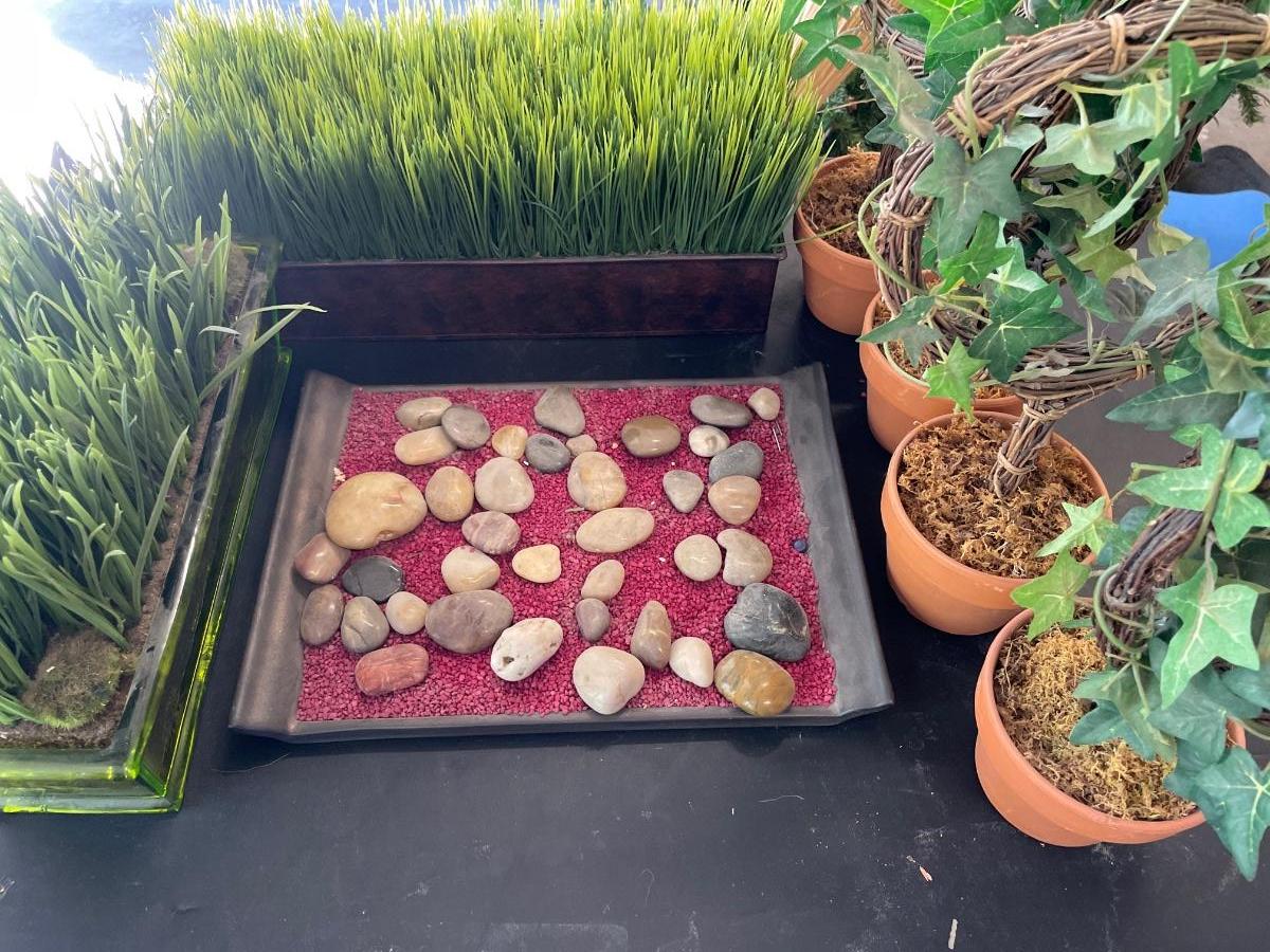 Faux plants and rock garden