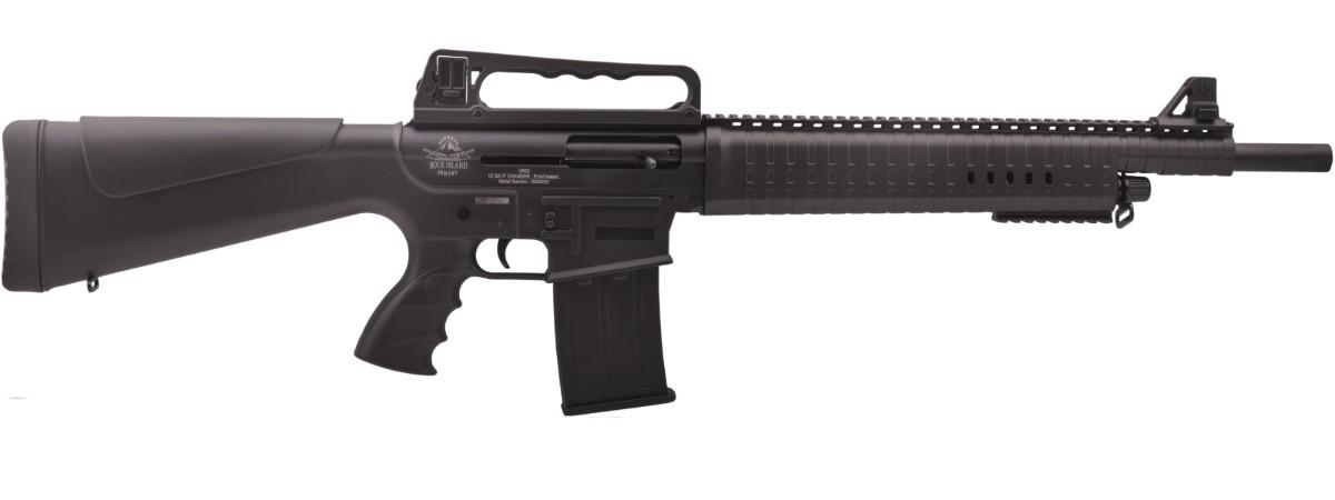 Rock Island VR60 Standard Black 12 Gauge 3in Semi Automatic Shotgun - 20in - The VR60 AR semi-automatic shotgun uses a conventional gas-operated action which is located around the support tube that runs below the barrel. The upper receiver is manufactured from an aluminum alloy, has a carrying handle, and integral picatinny rail. The manual safety also duplicates the M16 style being located on the left side of the receiver above the pistol grip.