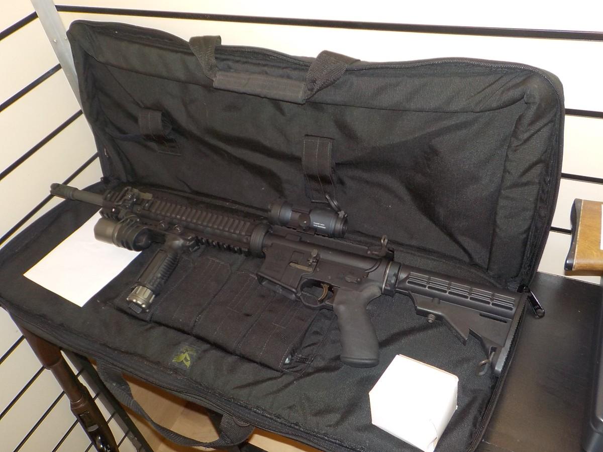 Not Ma. resident's. OUT of state or local police in Ma. This is brand new with all papers and 5 Magazines with a super carry case. Bill of sale was $2900.00 with all the accessories. Not available to Ma. and Ct. Lic. Gun owners check your FFL conn. ...Please check your state for acceptance. Scope and light carry case and full mags. (5).