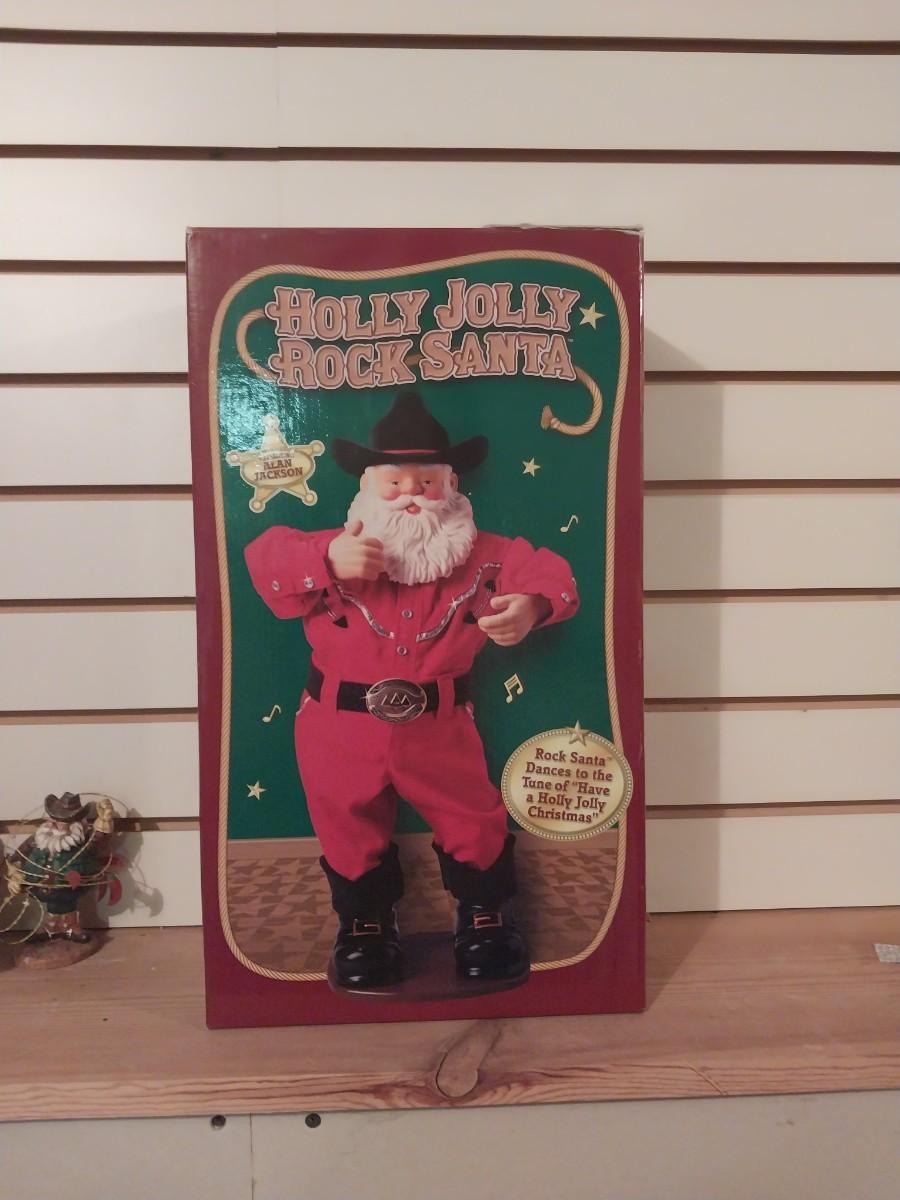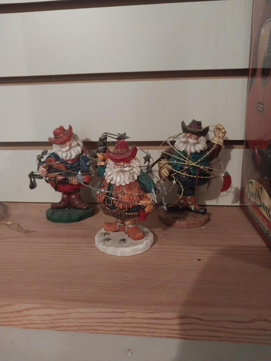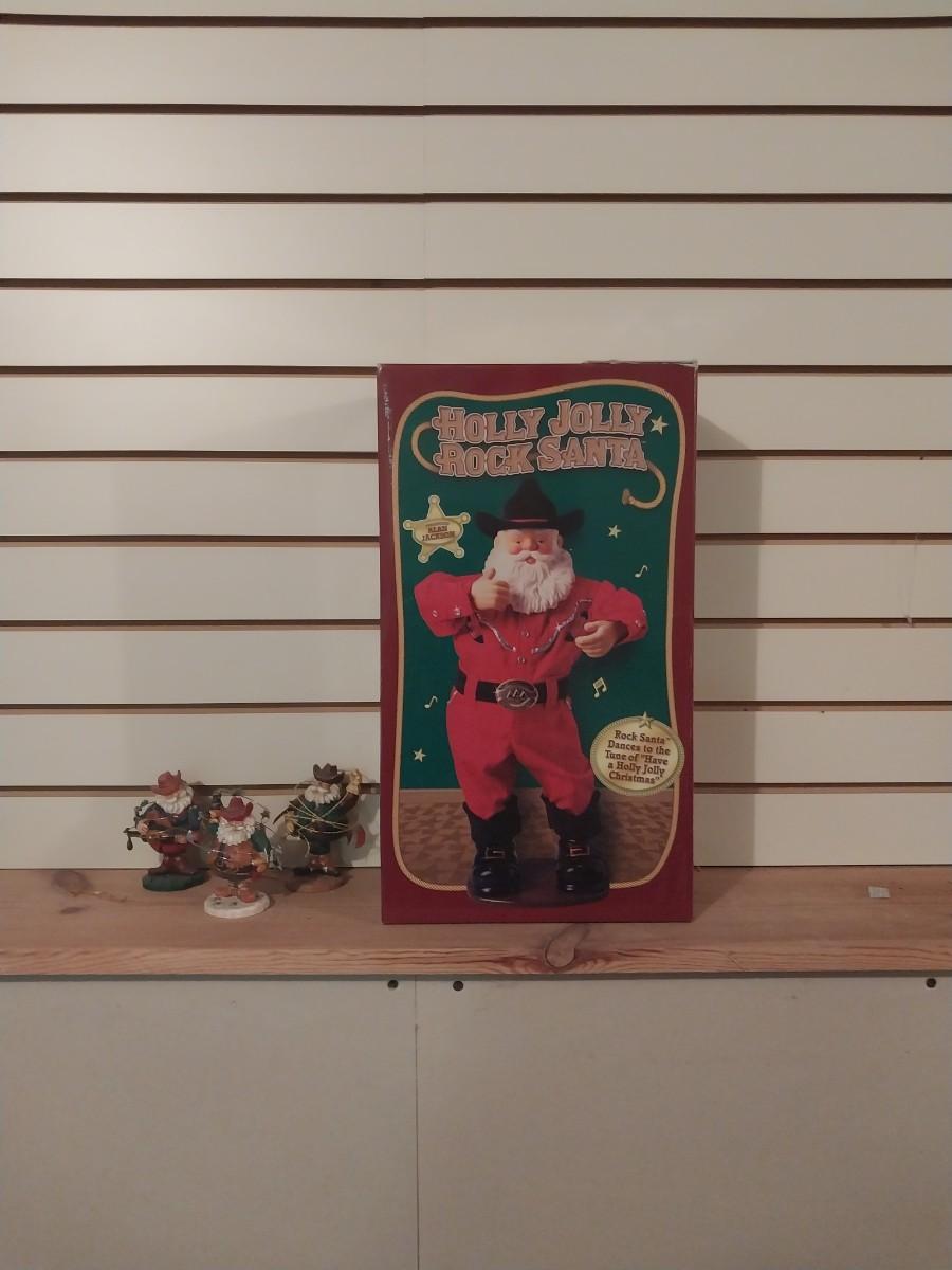 HOLLY JOLLY ROCK SANTA AND THREE SANTA FIGURINES