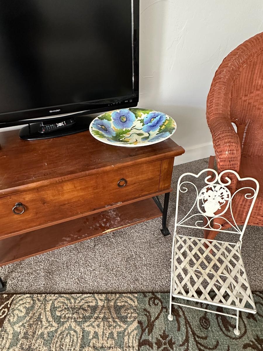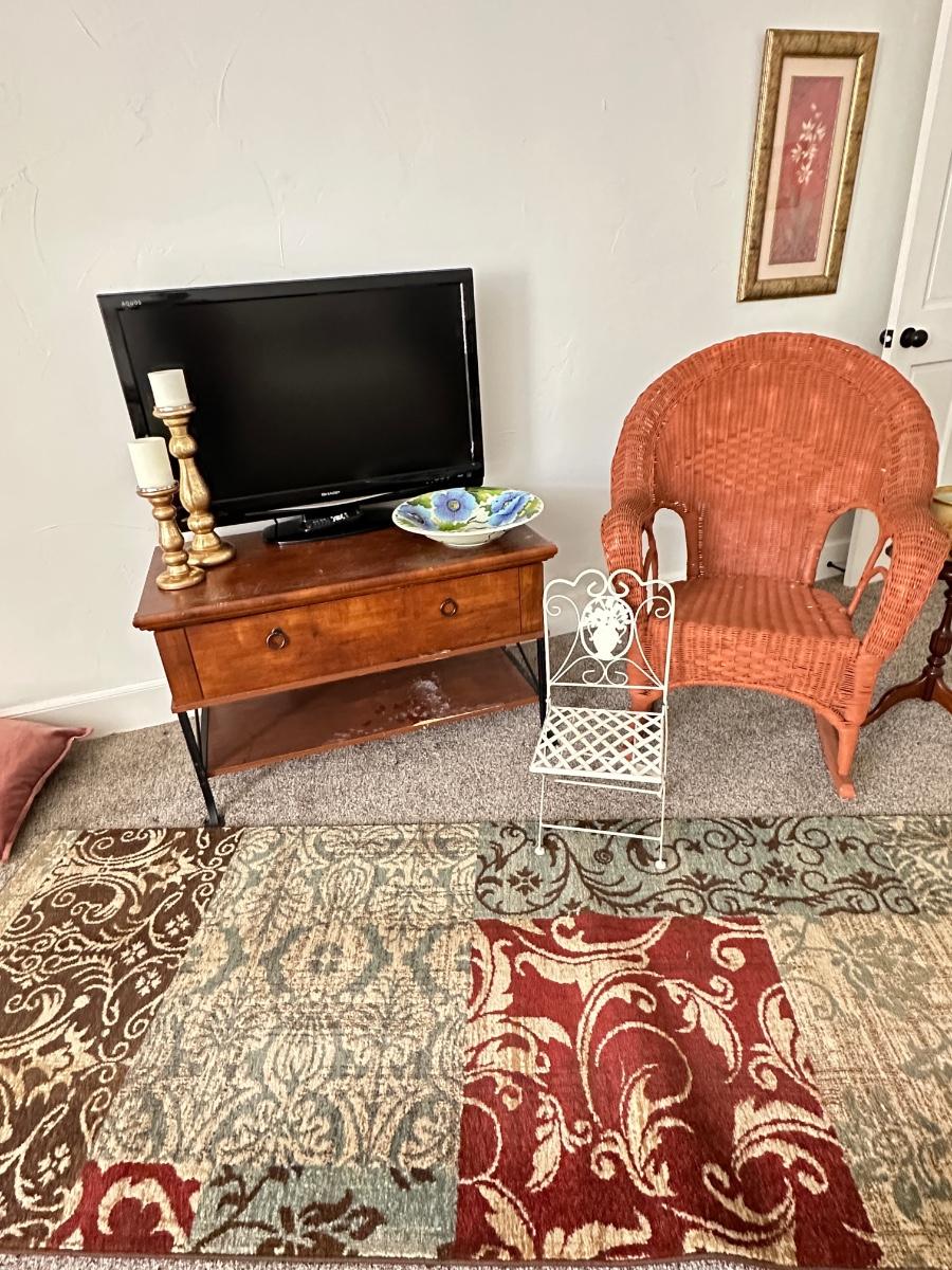 Rocker lot with TV, Art, Candles, Rug, Childs chair, Decorative Bowl,