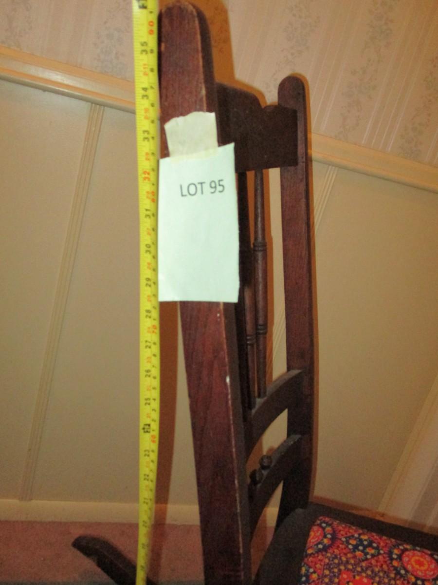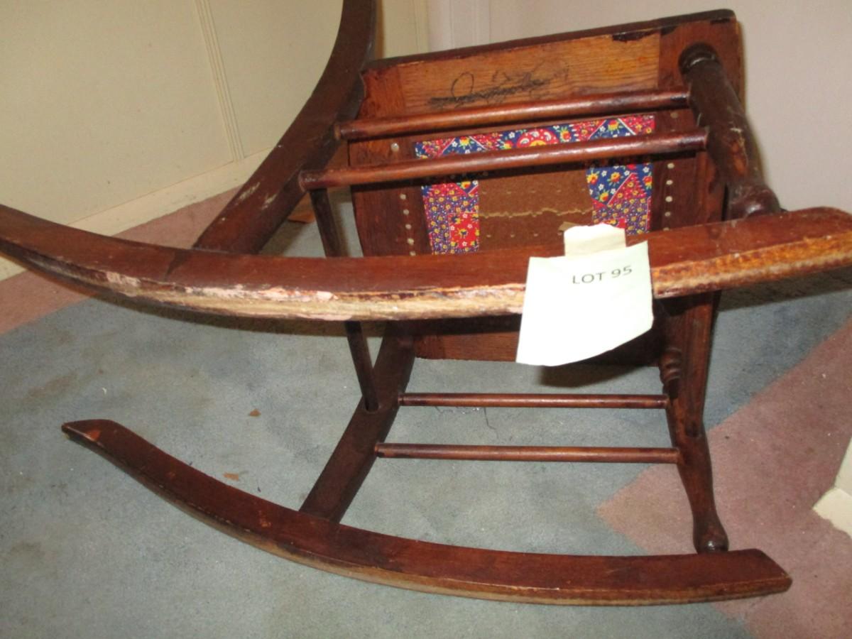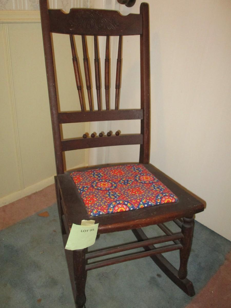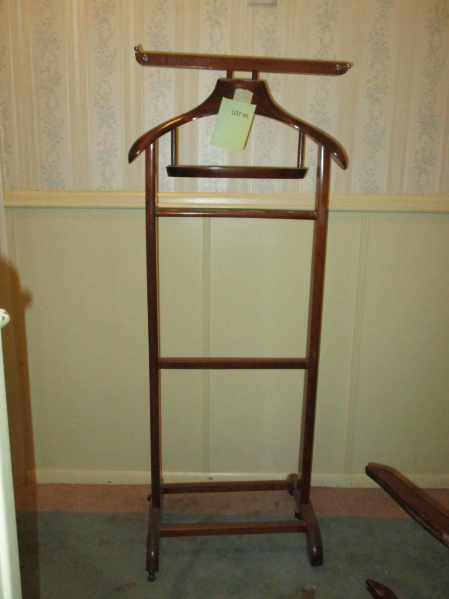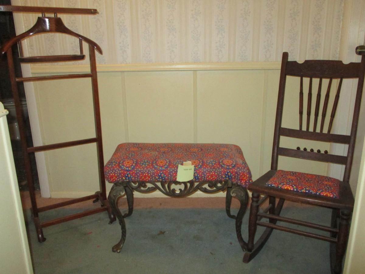 Mahogany gentleman's rack. Rocking chair. Powder bench with wrought iron base