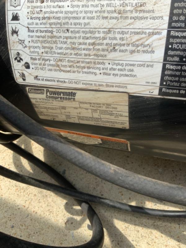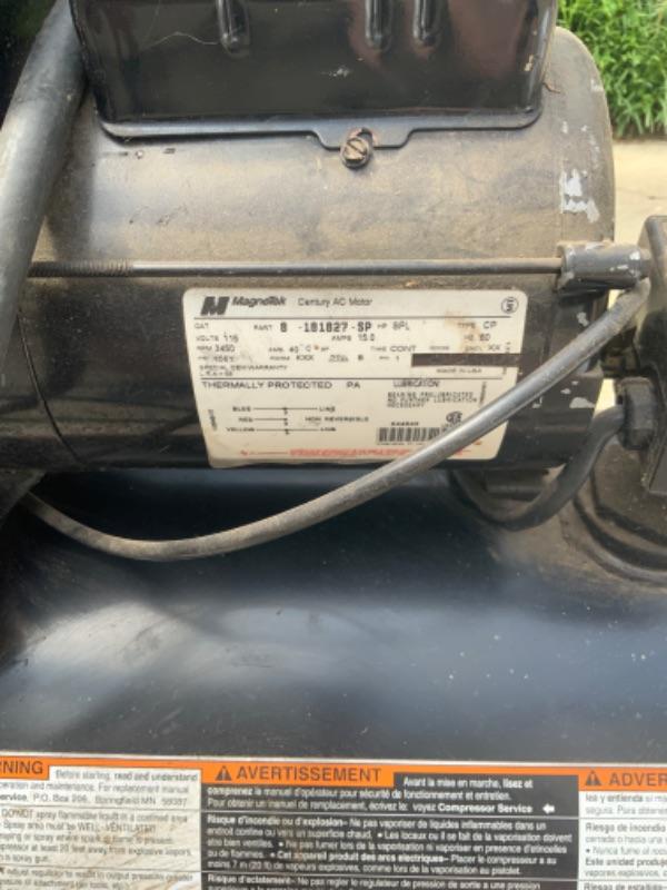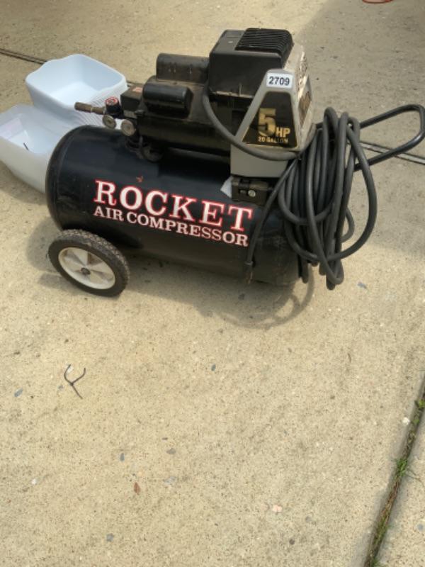 Rocket air compressor five HP 20 gallon works Lot 2709