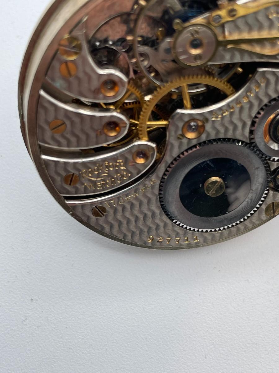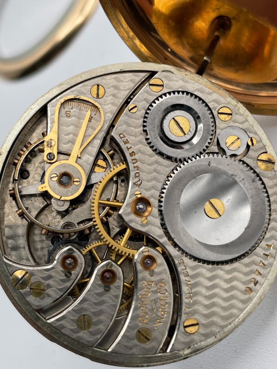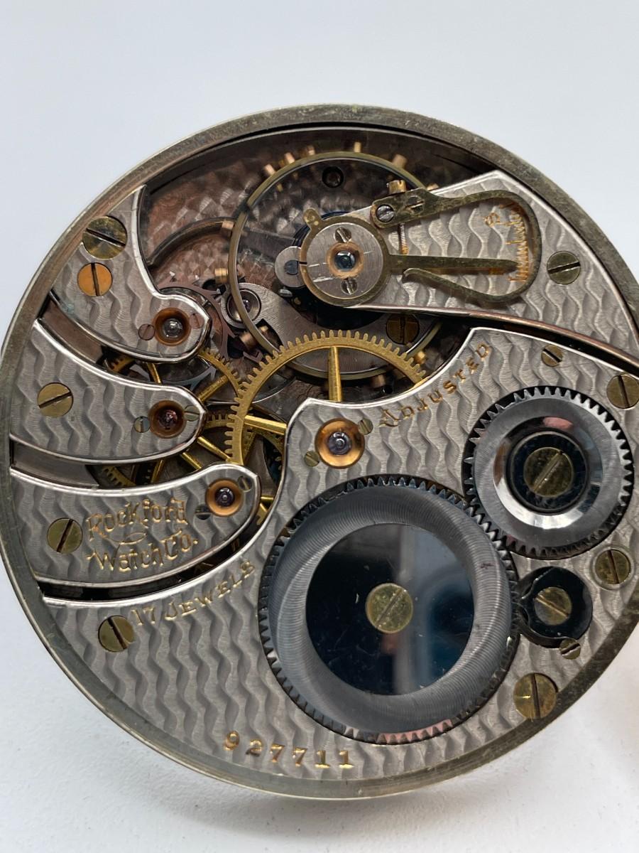 Rockford Pocket watch No. (927711), Size 16S, Production Yr. 1913, 17 Jewels. Case: Jboss Guaranteed 25 years, No. 5421946. Condition - Winder & watch are in working order. This is not a guarantee that all parts are original nor is the watch autheniticated.