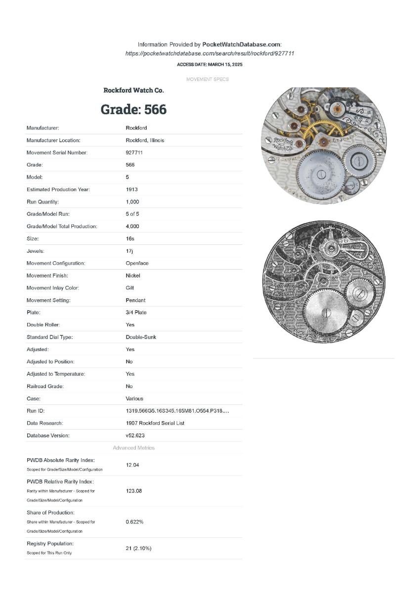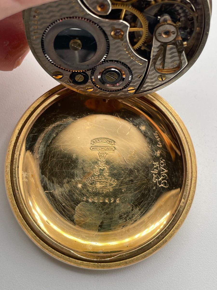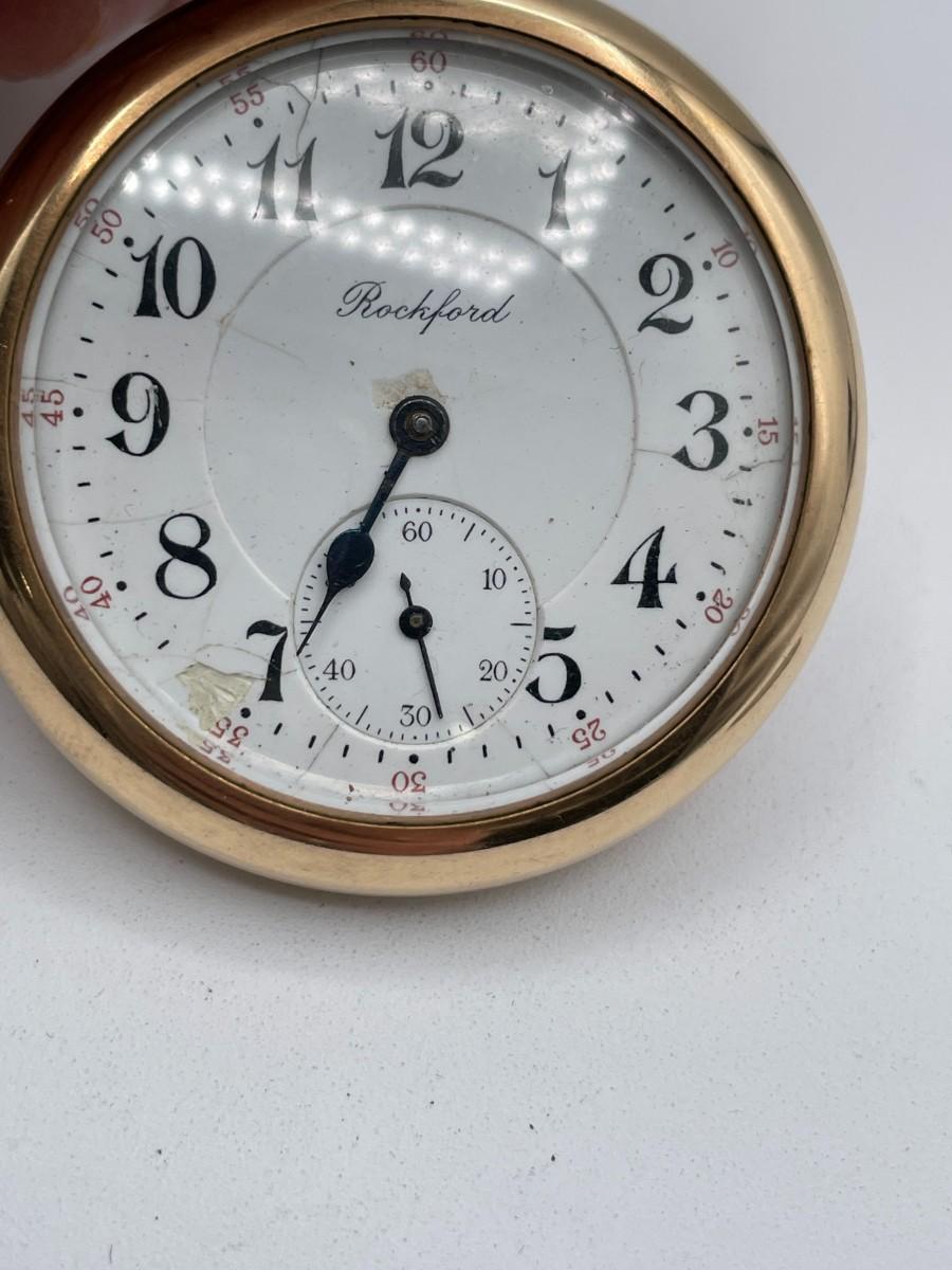 Rockford Pocket watch No. (927711), Size 16S, Production Yr. 1913, 17 Jewels. Case: Jboss Guaranteed 25 years, No. 5421946. Condition - Winder & watch are in working order. This is not a guarantee that all parts are original nor is the watch autheniticated.