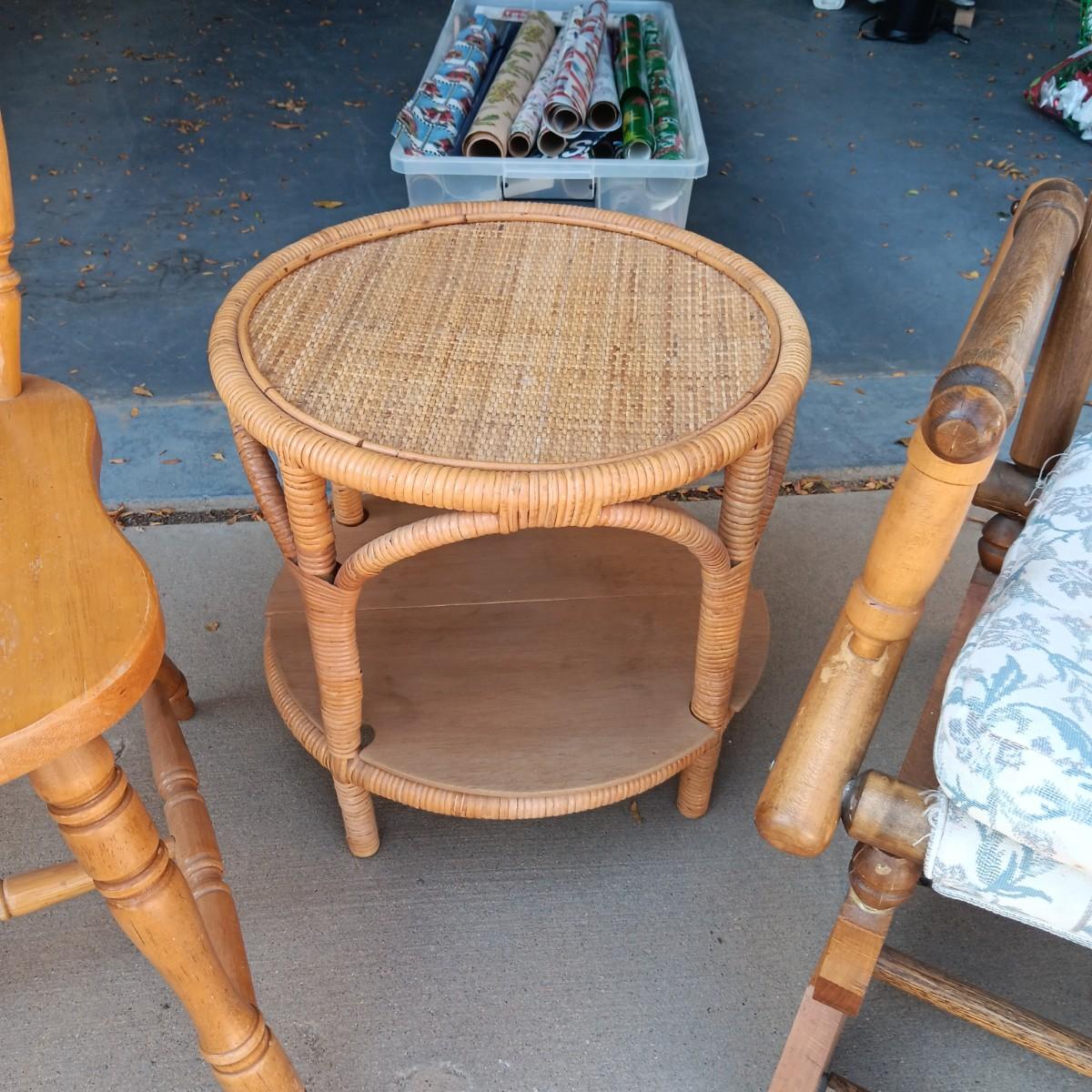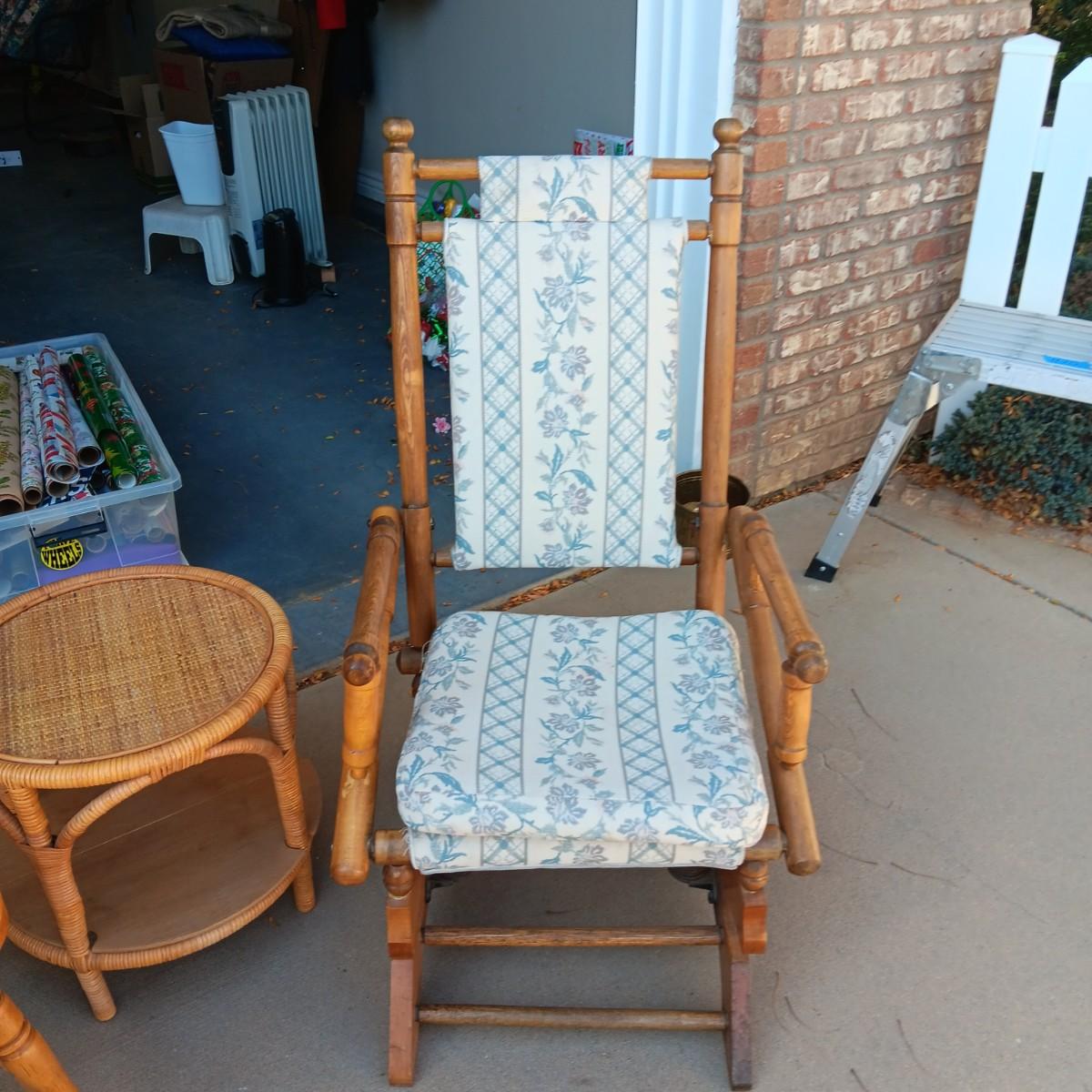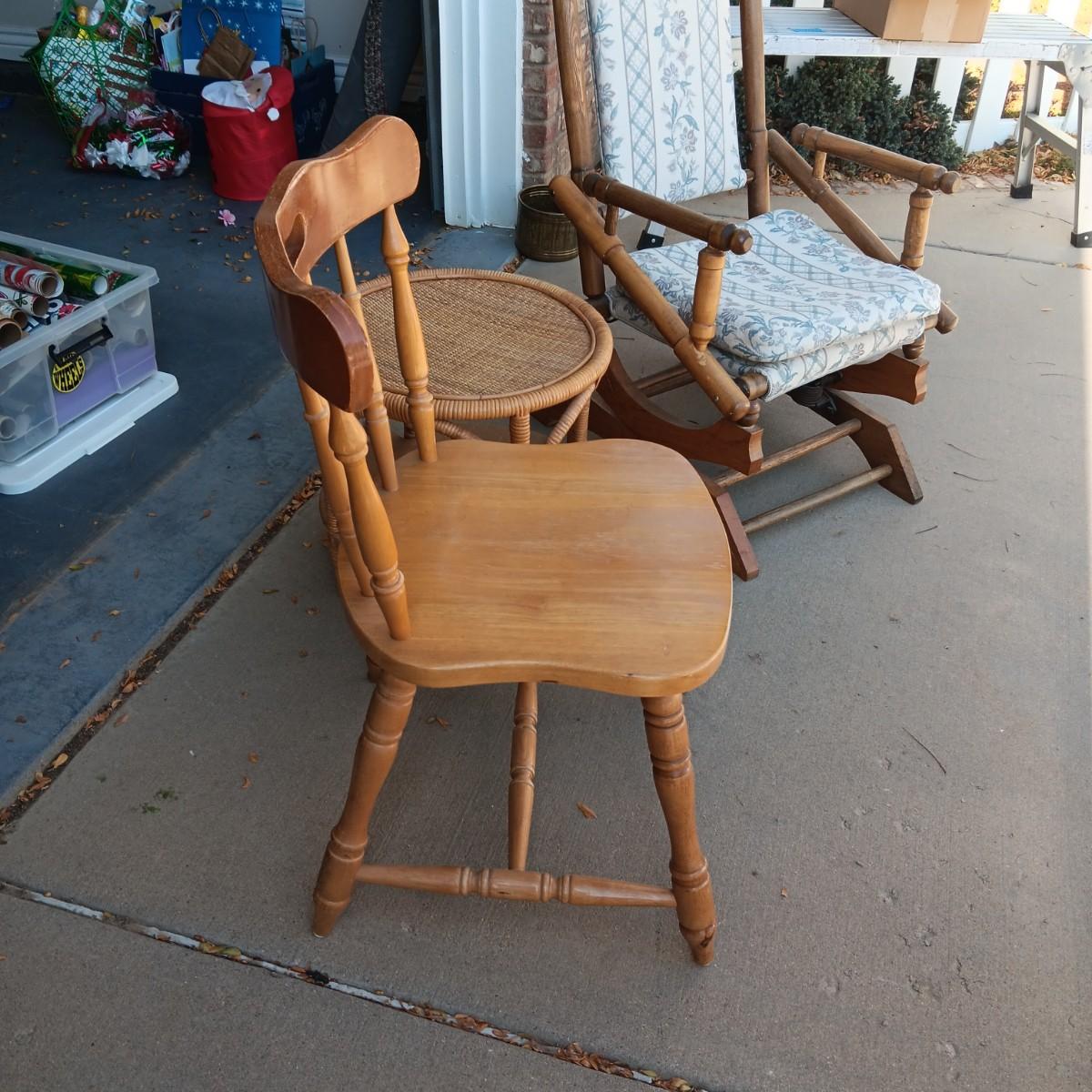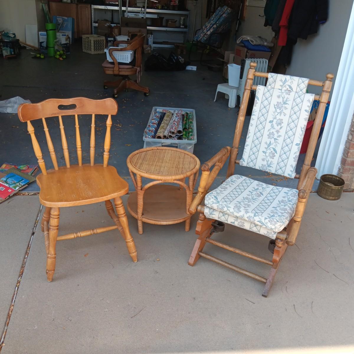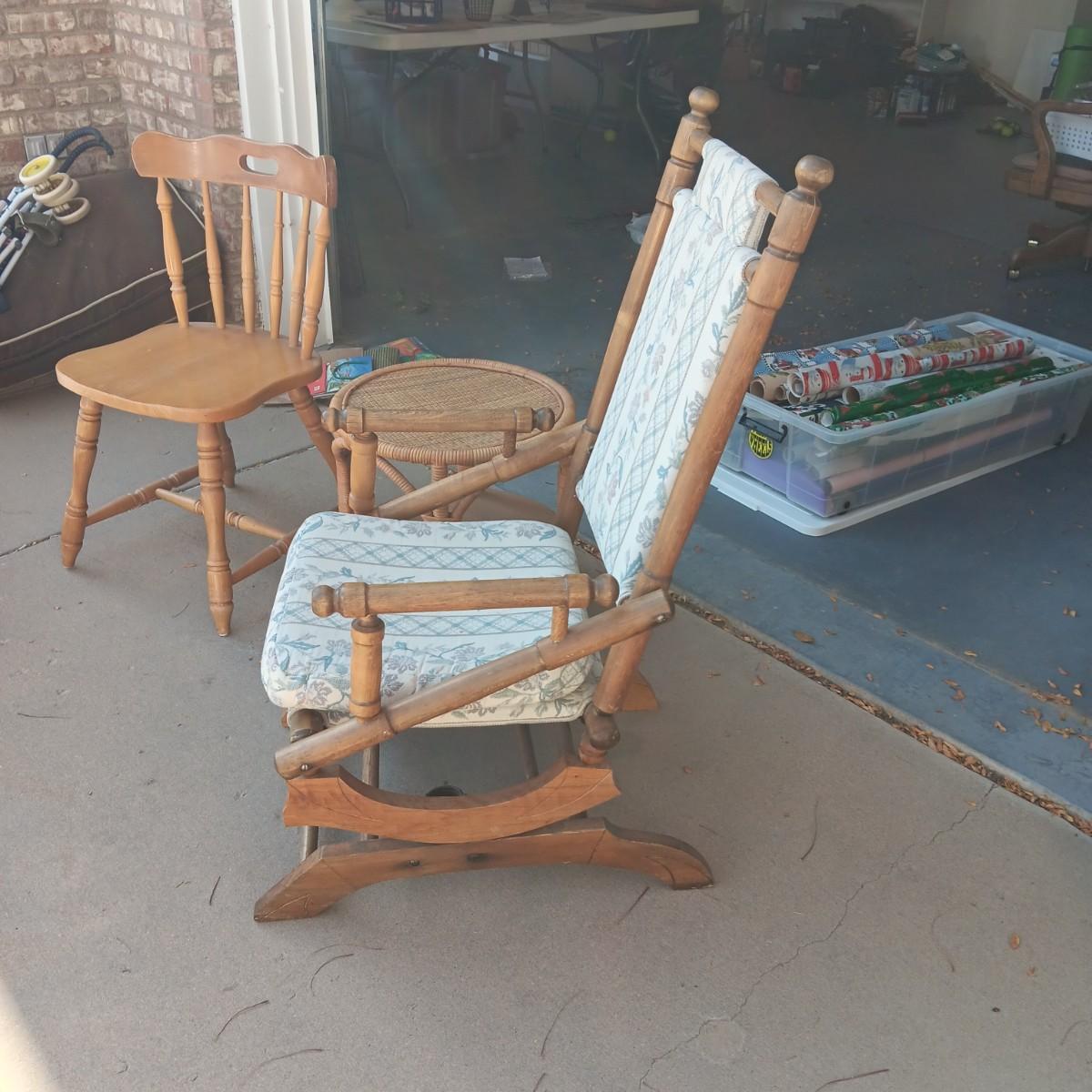 ROCKING AND DINING CHAIRS PLUS ROUND SIDE TABLE