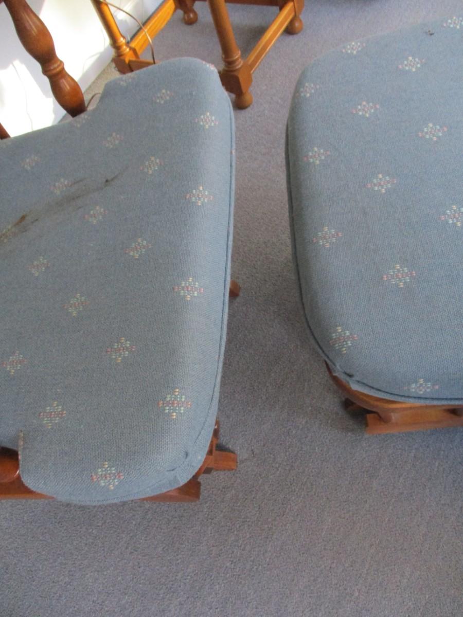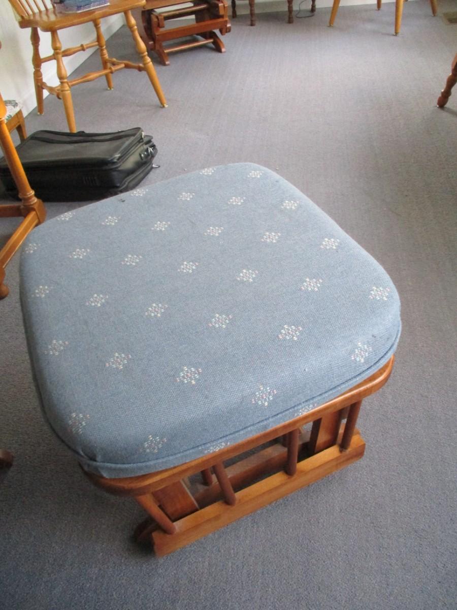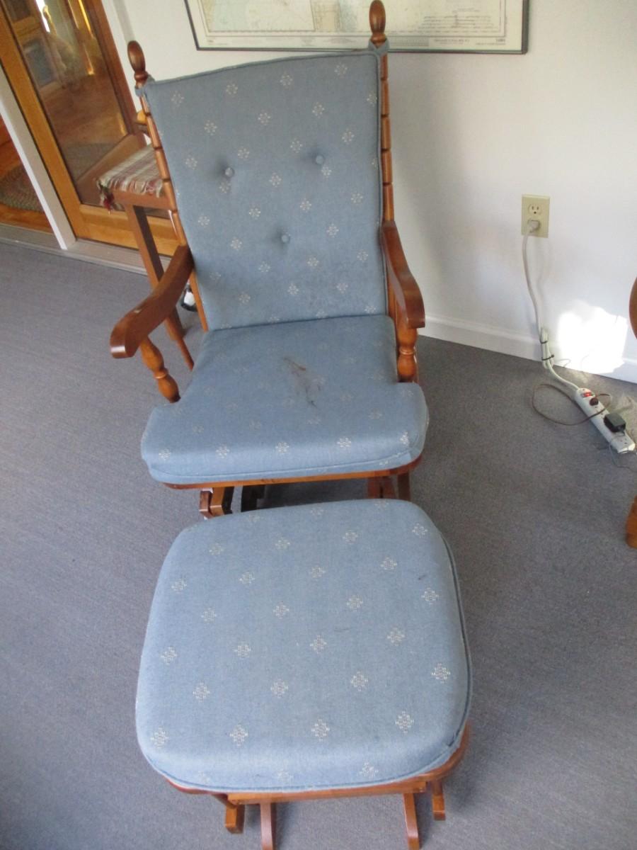 Wooden Glider Chair with Ottoman - B. Cushions need cleaning.
