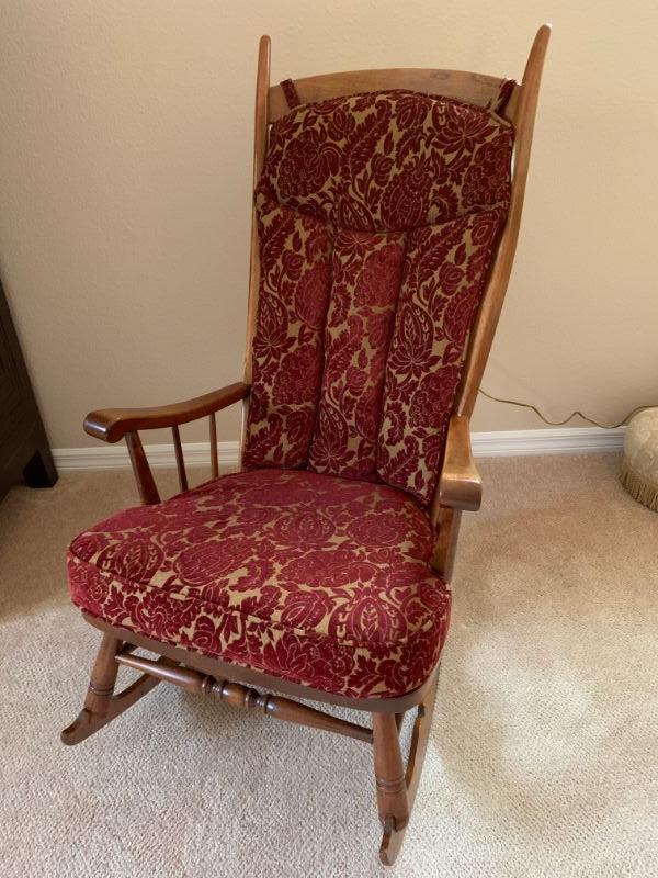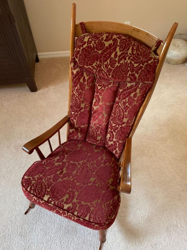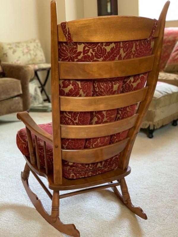 Rocking chair with upholstered seat cushion and back cushion