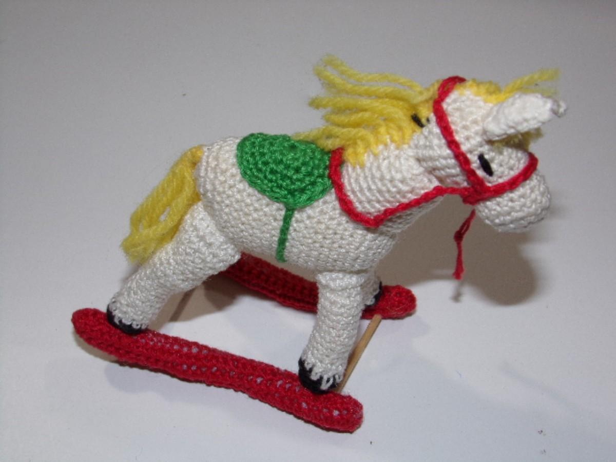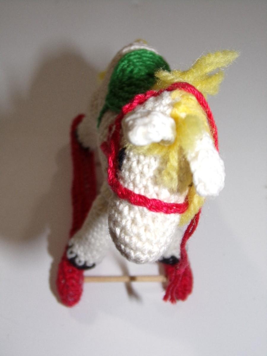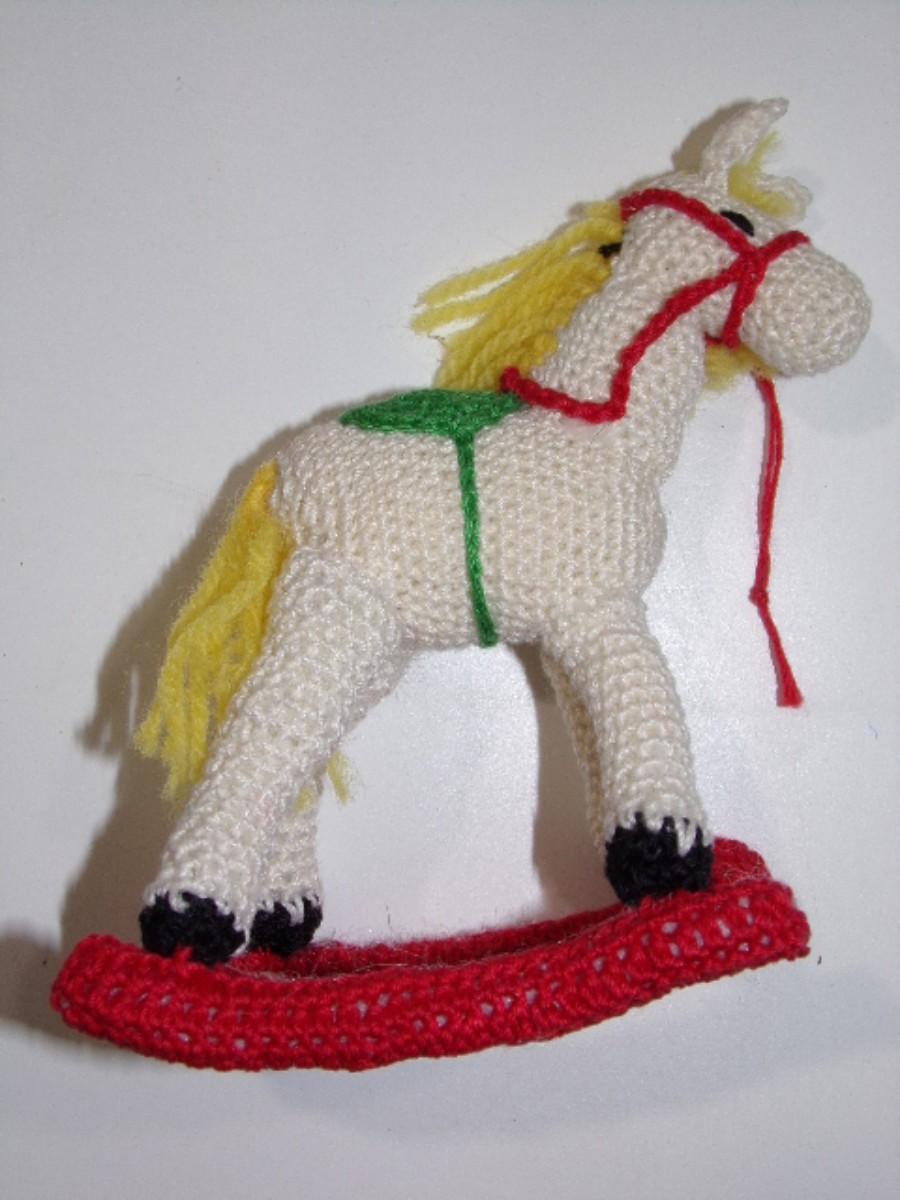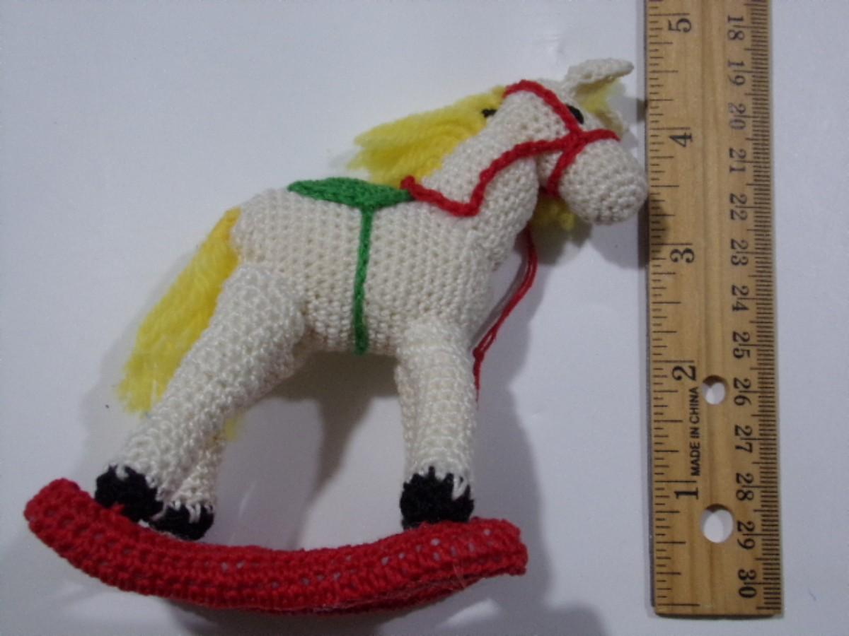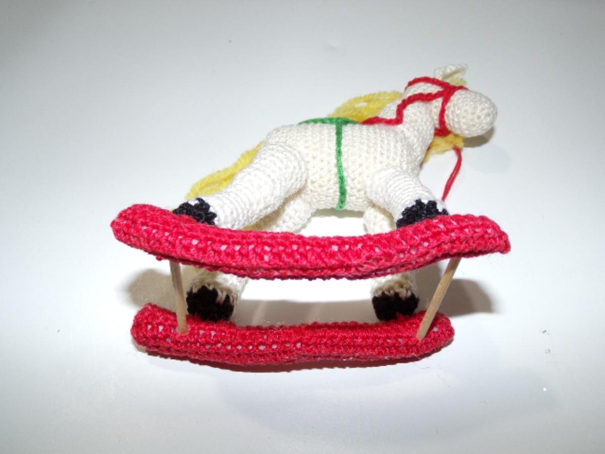 Hand crafted crocheted, starched & filled rocking horse tree or mantel ornament