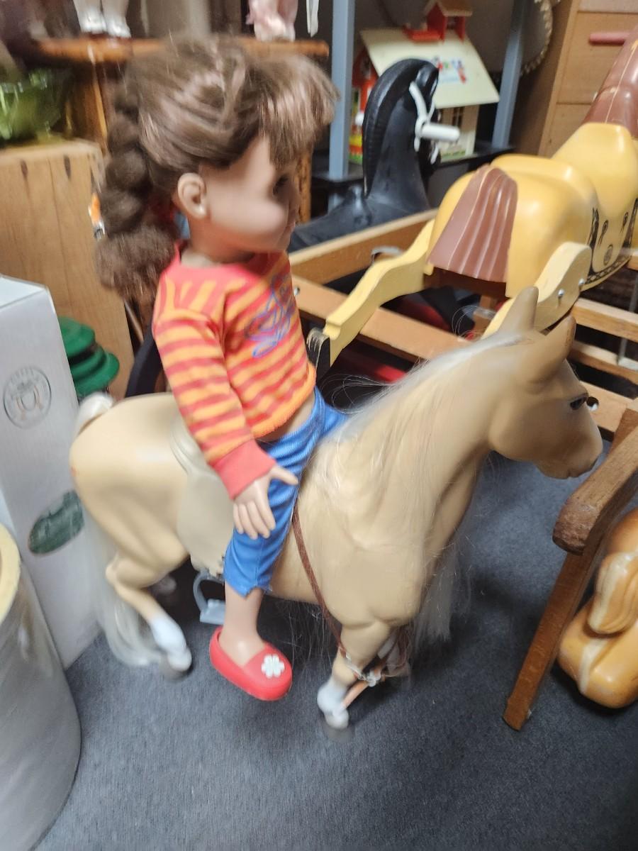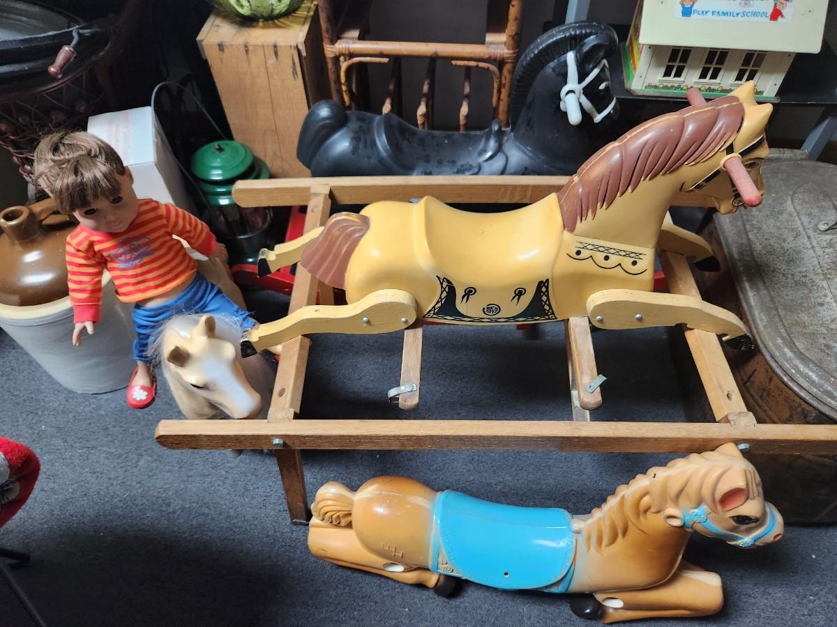 Comes with 2 rocking horses, an extra horse, and a doll on a horse.
