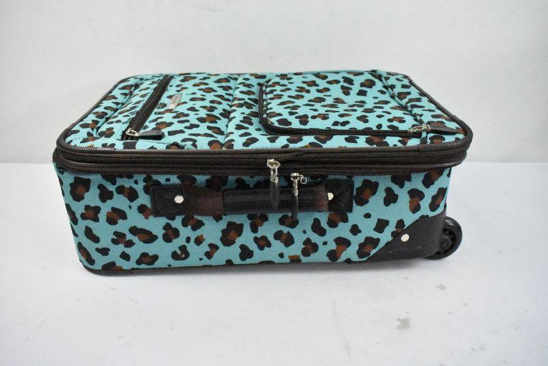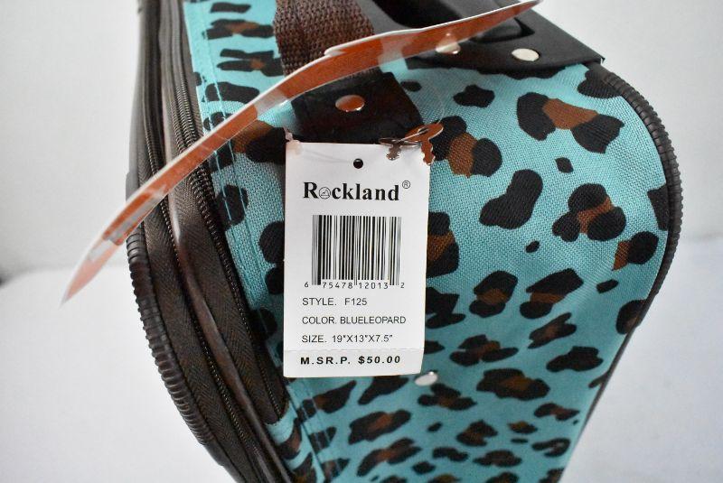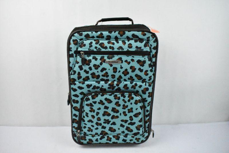 Rockland Blue Leopard Soft-Sided Suitcase, 19" x 13" x 7.5" - New, With Tags