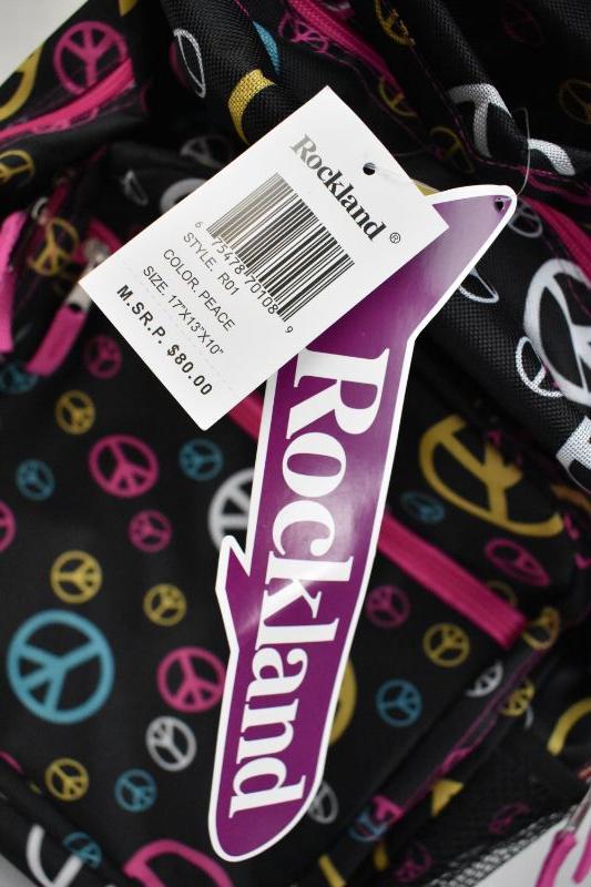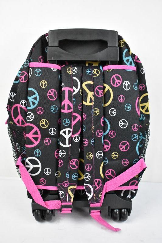 Rockland Rolling Backpack, Black with Peace Signs - New