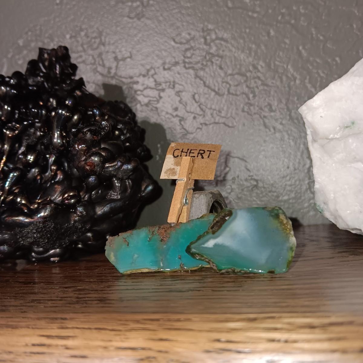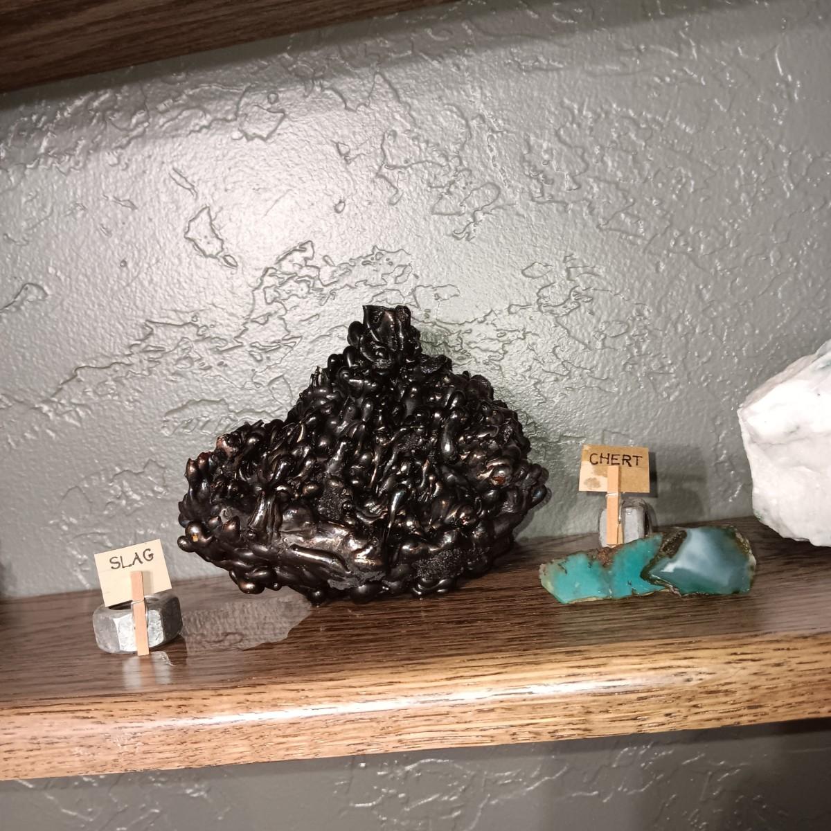 ROCKS FROM A COLLECTION LABELED SLAG, GHERT & AMAZONITE FELDSPAR