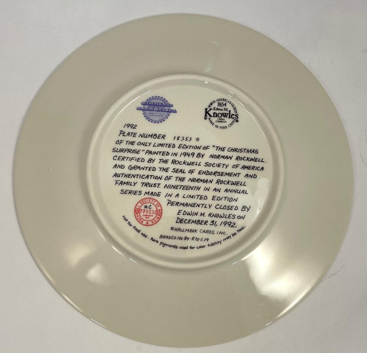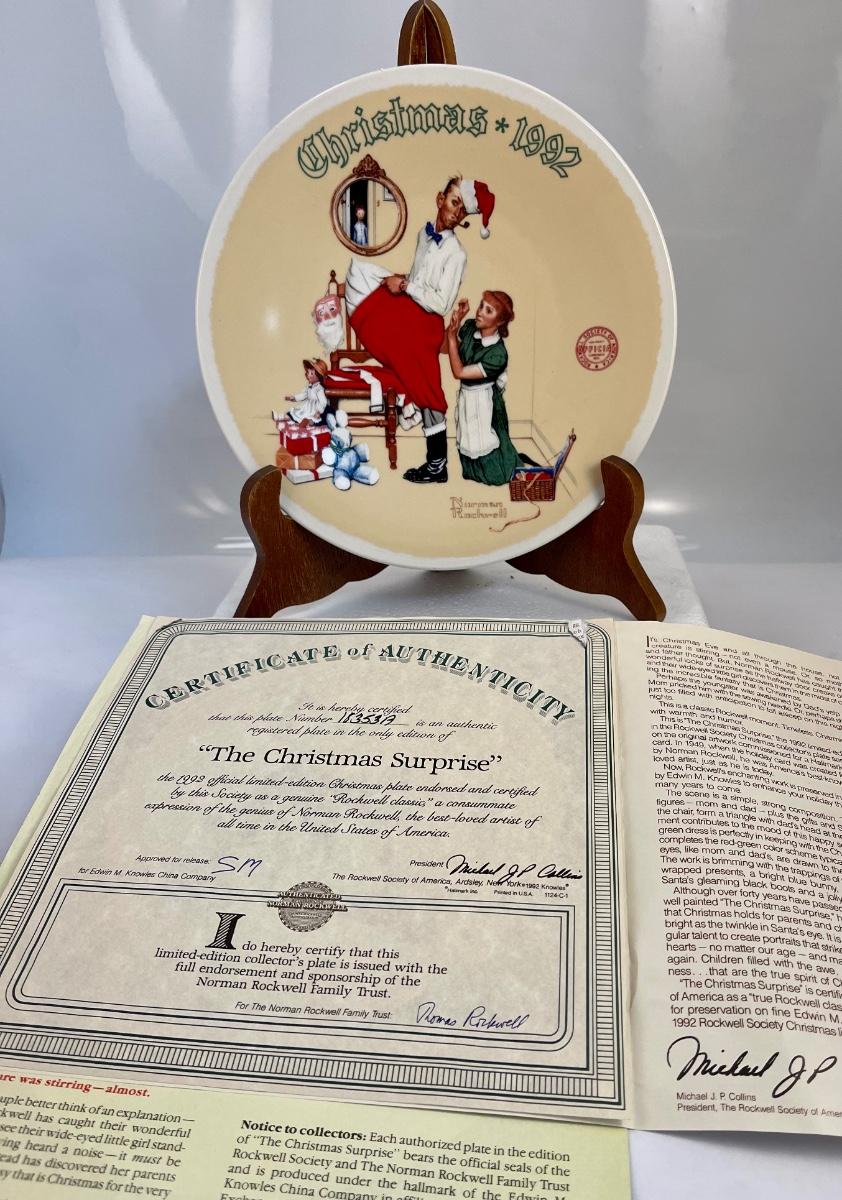Norman Rockwell Christmas collector plate, 1992 “The Christmas Surprise” Knowles limited edition