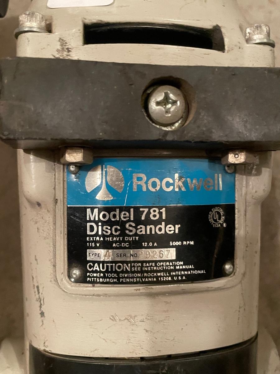 Rockwell Electric Model 781 Disc Sander