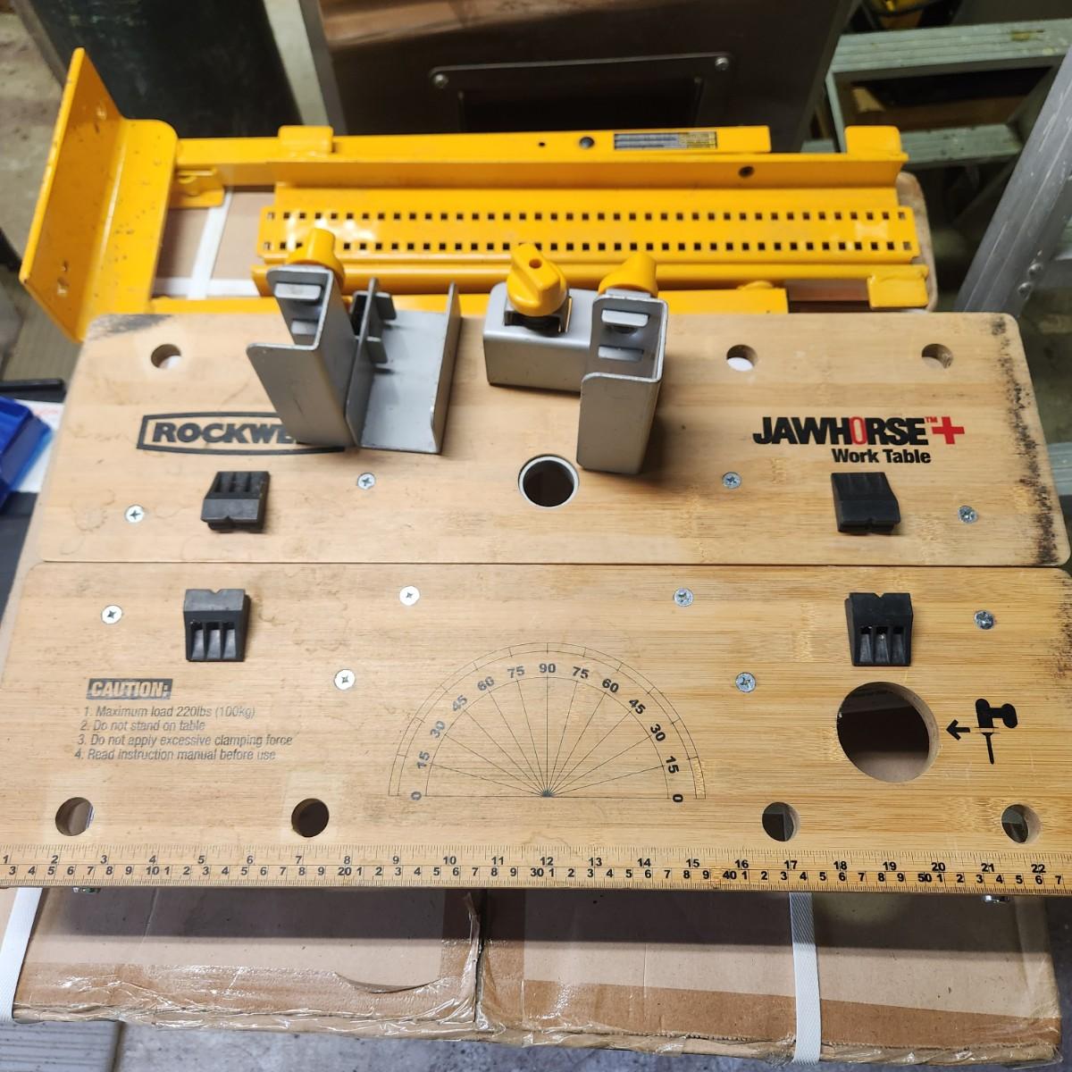 lot of Rockwell Jawhorse RK9000 Clamp Workstation w Work table & PlyWood Clamp Rk9100 RK9101