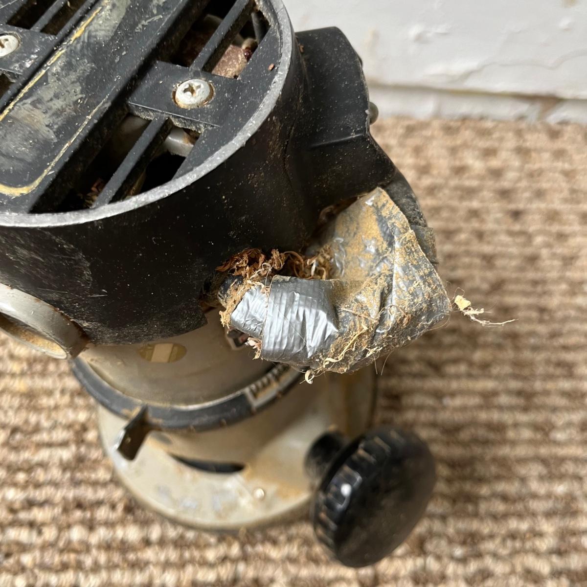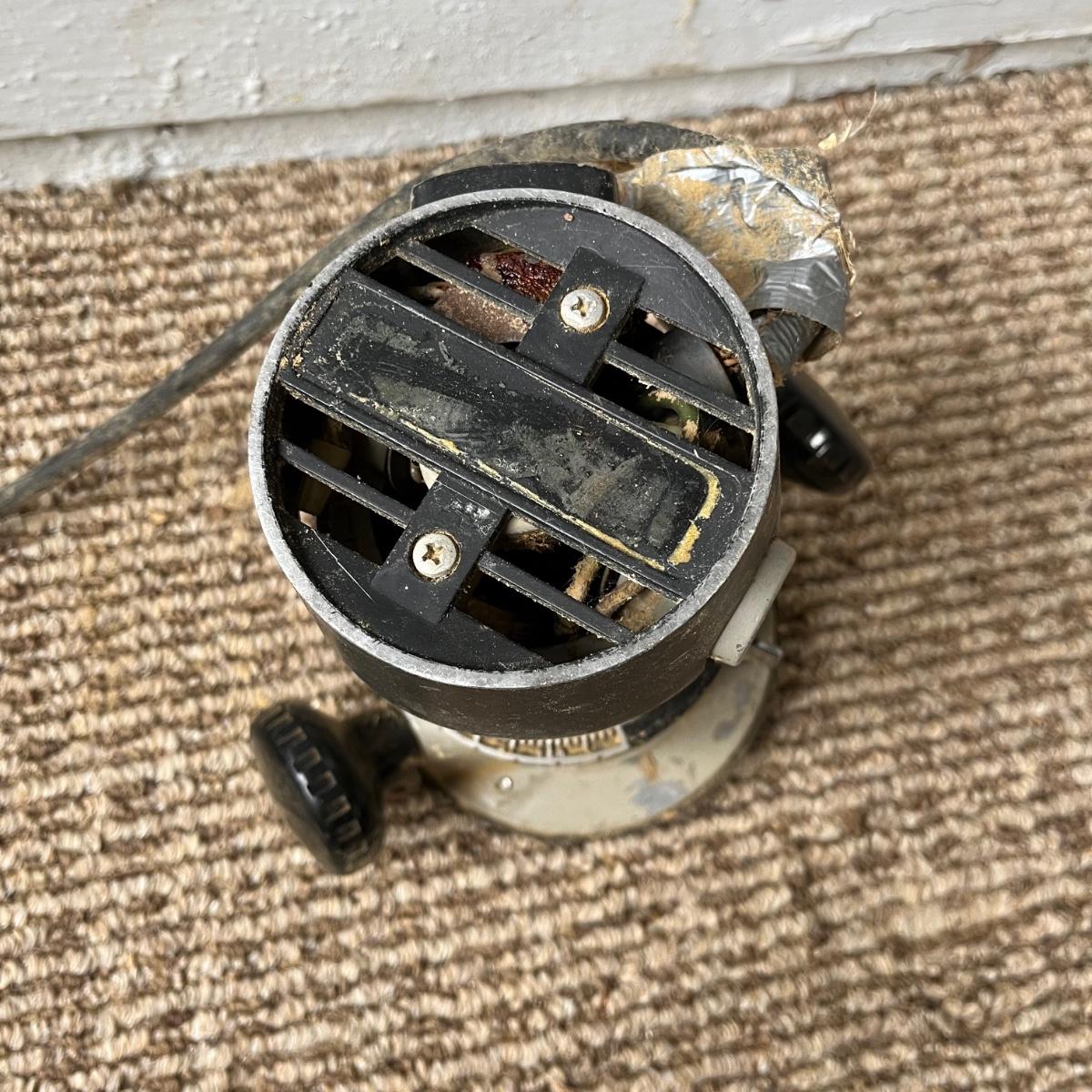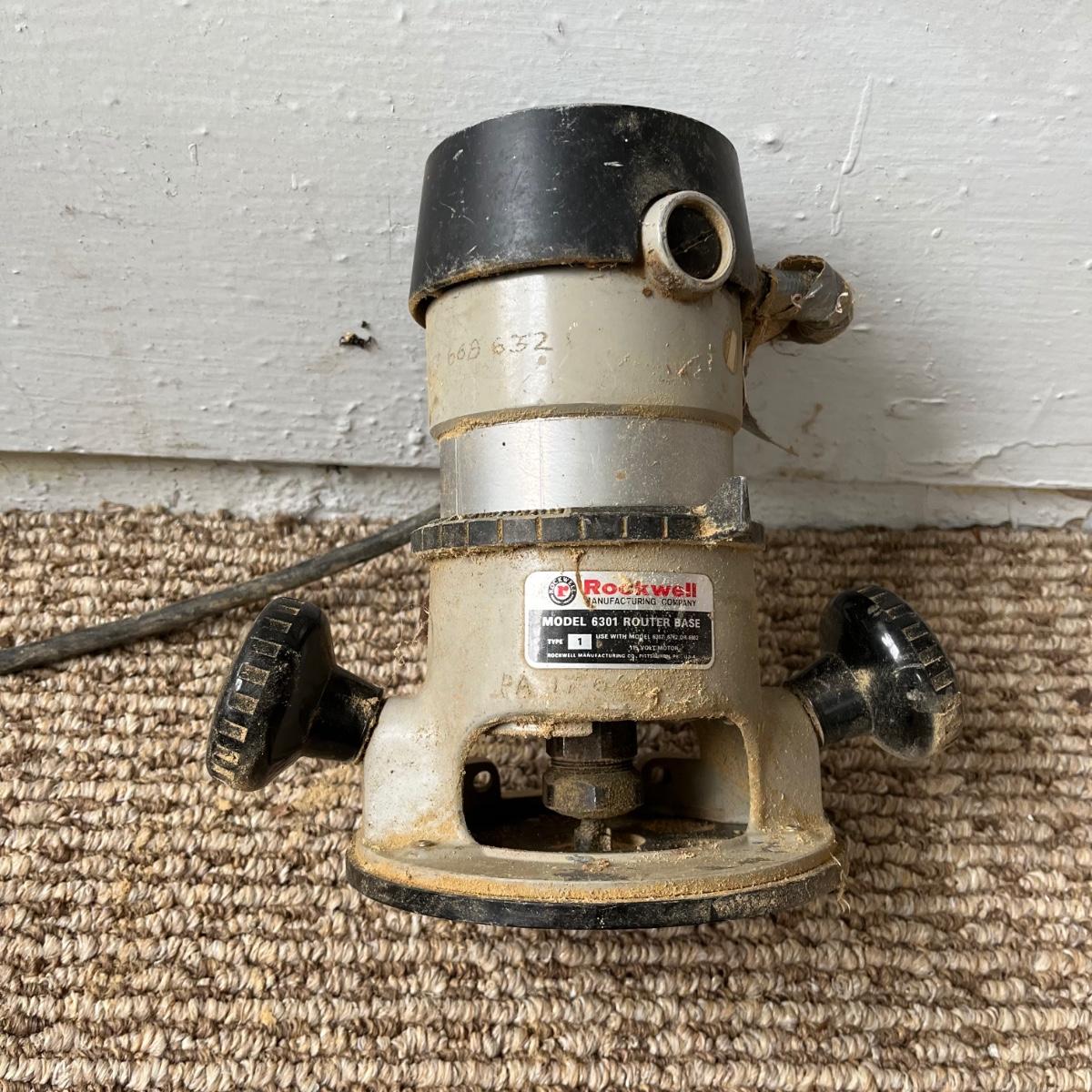Lot includes a Rockwell router model # 6302 with a Rockwell model # 6301 base. Router worked when tested. Cord has been taped, see pictures.