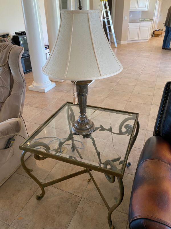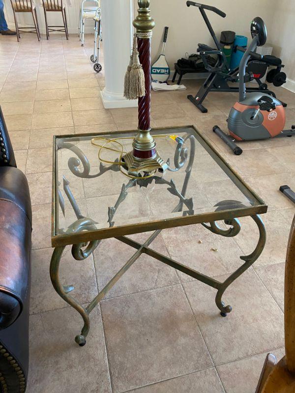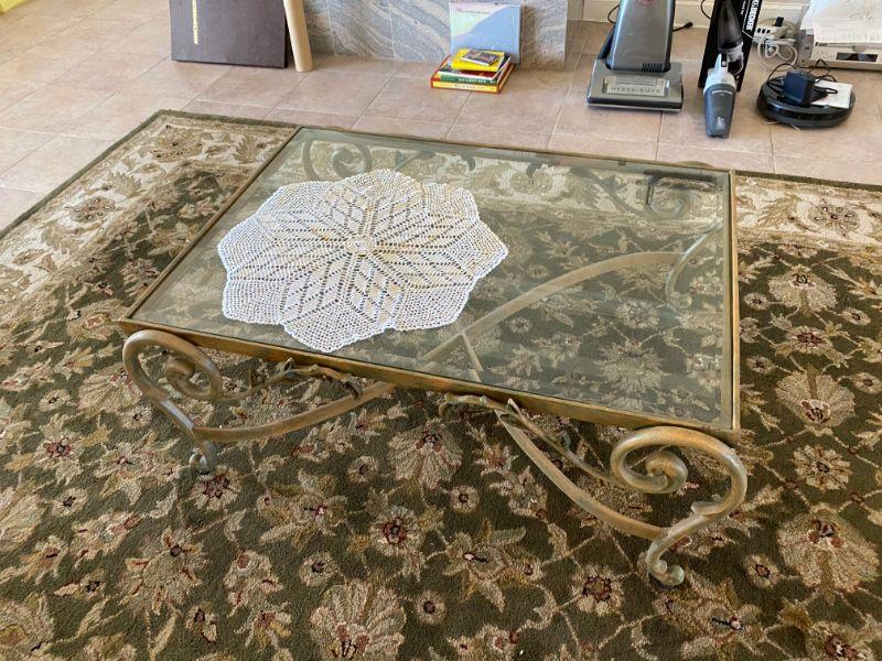 Rod iron coffee table and 2 end tables w/ glass tops