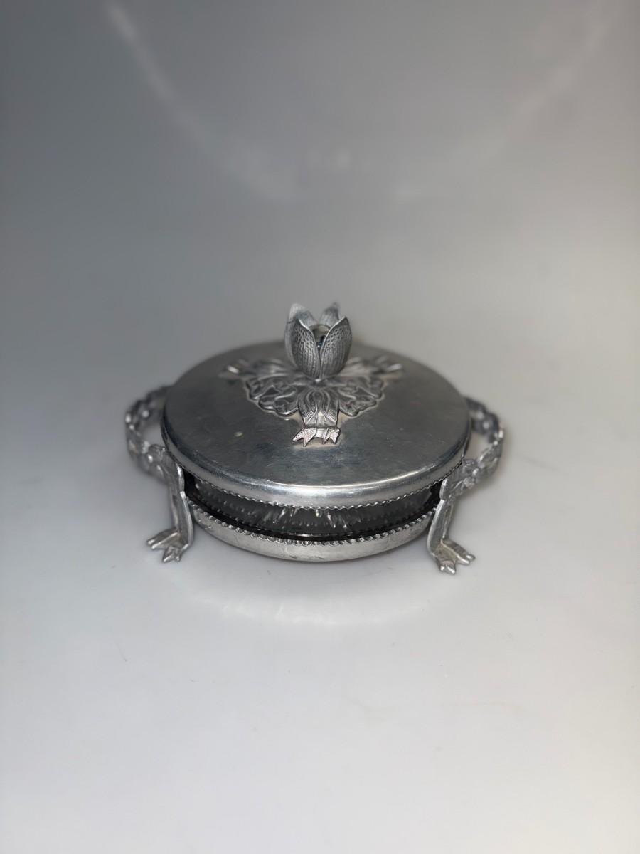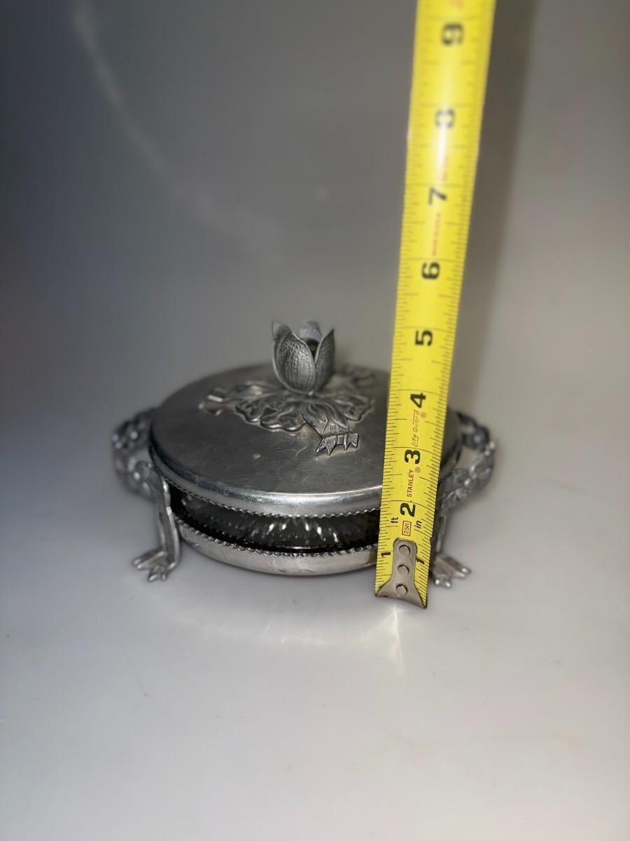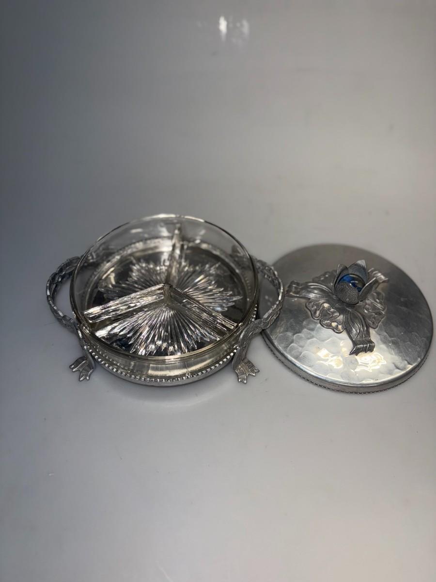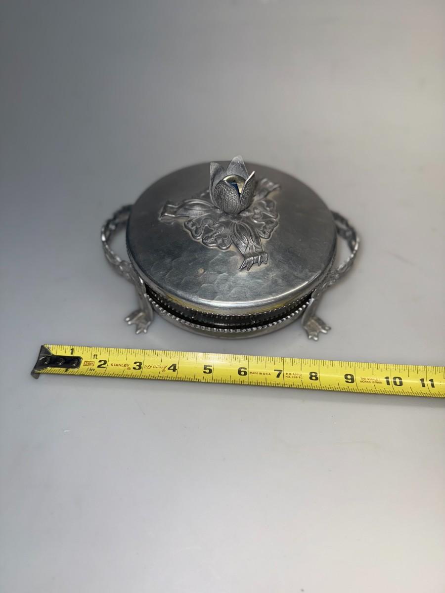 Rodeny Kent Glass Tulip Vanity Powder Jar with Hammered Aluminum Cover