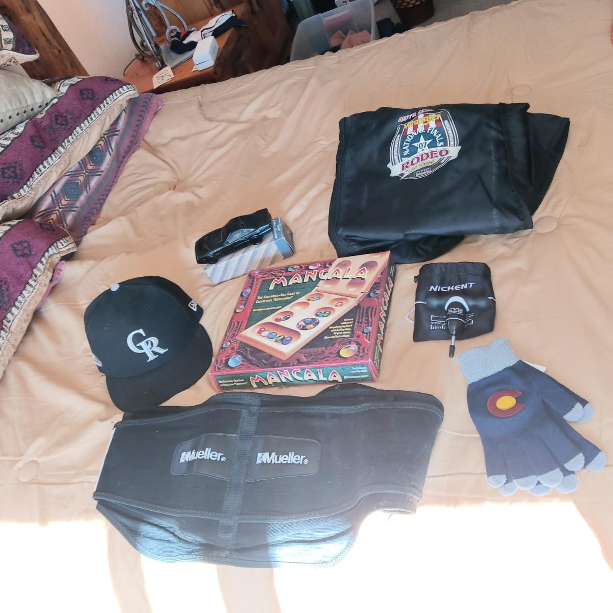 RODEO GARMENT BAG, MANCALA GAME, MUELLER WAIST BELT, NICKENT AND MORE