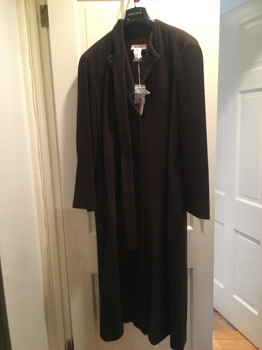 NWT tweed overcoat. Button front, pockets, fully lined, European size 42.