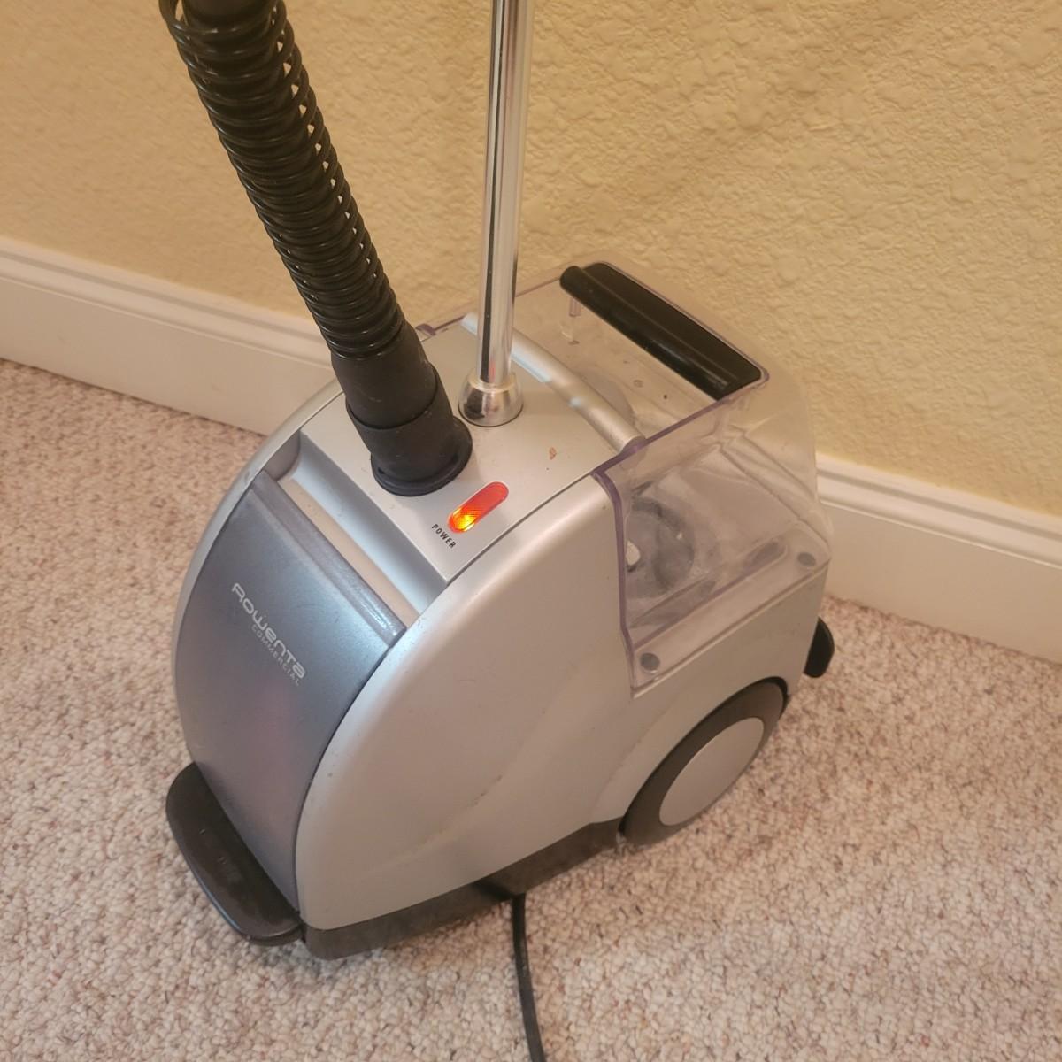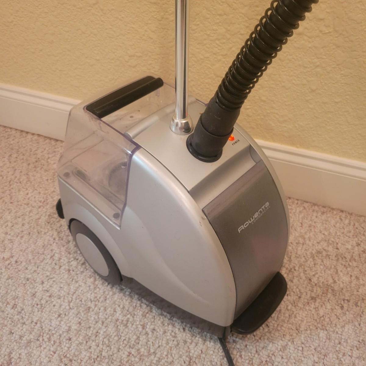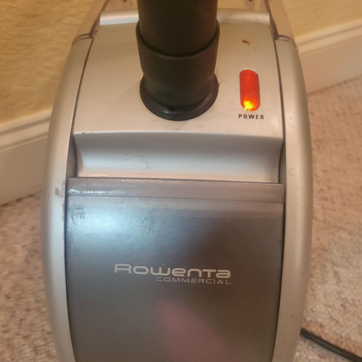 A Rowenta vertical steamer that powered on when plugged in. This item measures approximately 10.5" x 17" x 68"H. Local pickup only