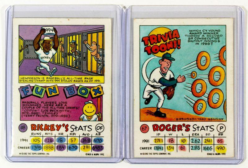 ROGER CLEMENS Rickey HENDERSON Baseball Cards Set 1992 TOPPS KIDS