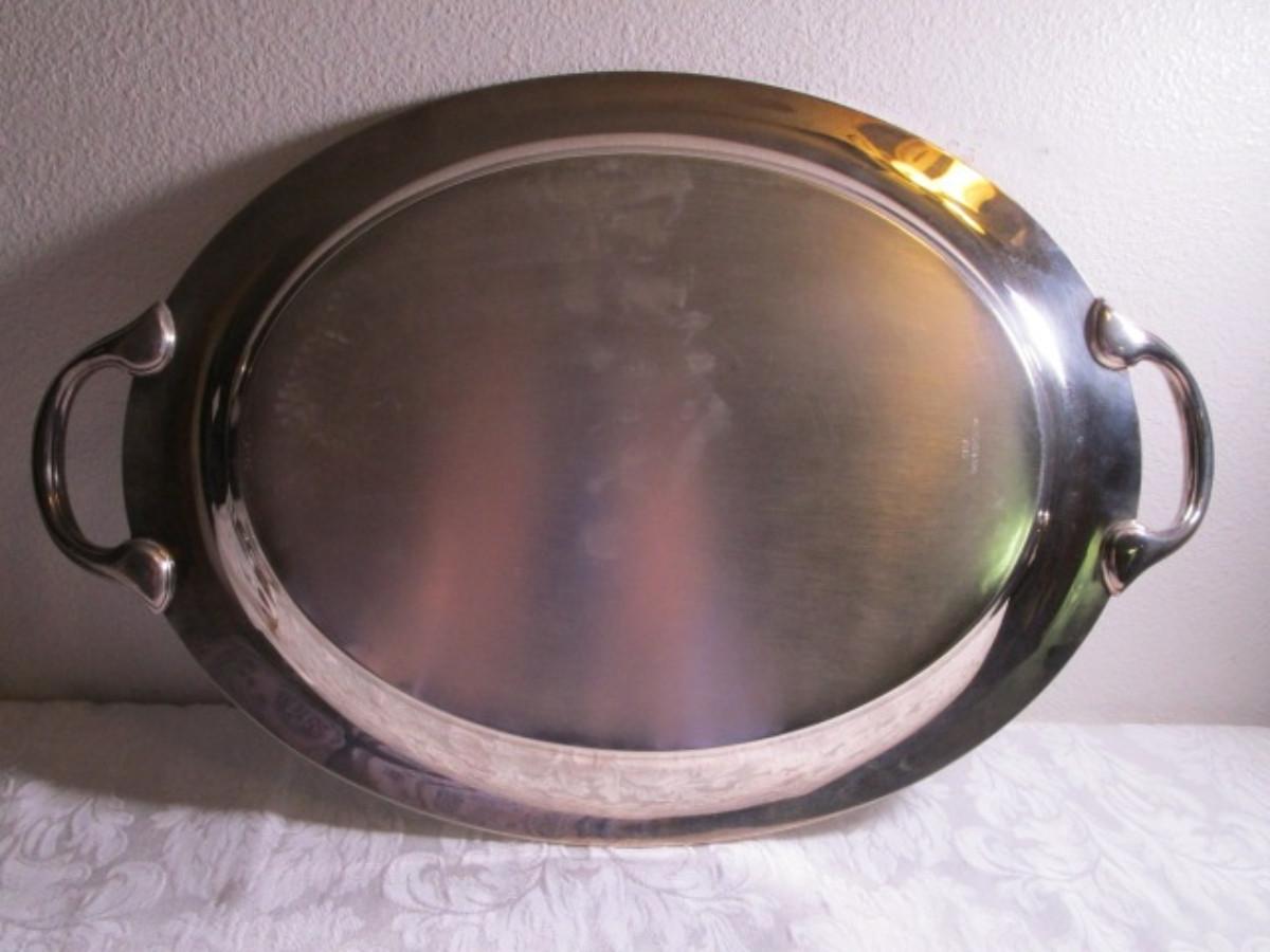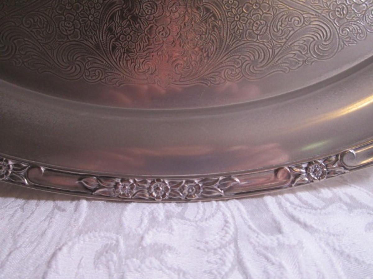 Model 2380 with handles 21-3/4" across x 13-3/8", could use cleaning with silver cleaner
