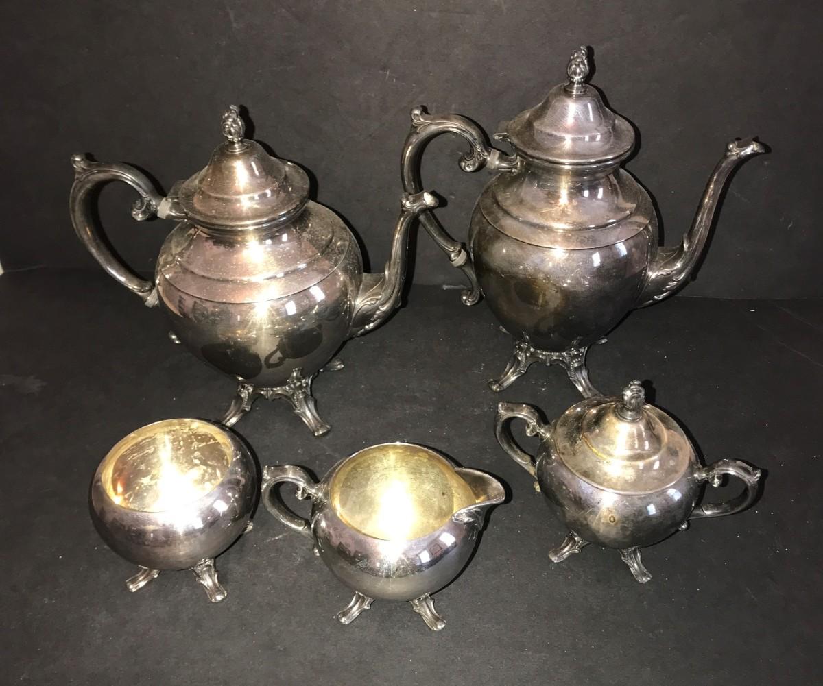Includes coffee pot, tea pot , creamer , sugar and open sugar .All in good condition .