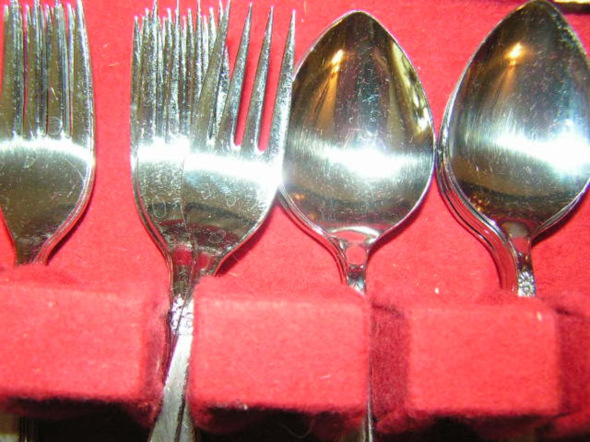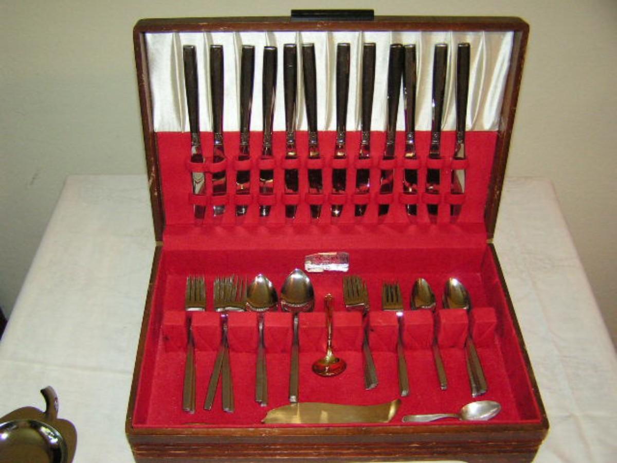 Rogers stainless steel flatware set in case. W/some misc pieces
