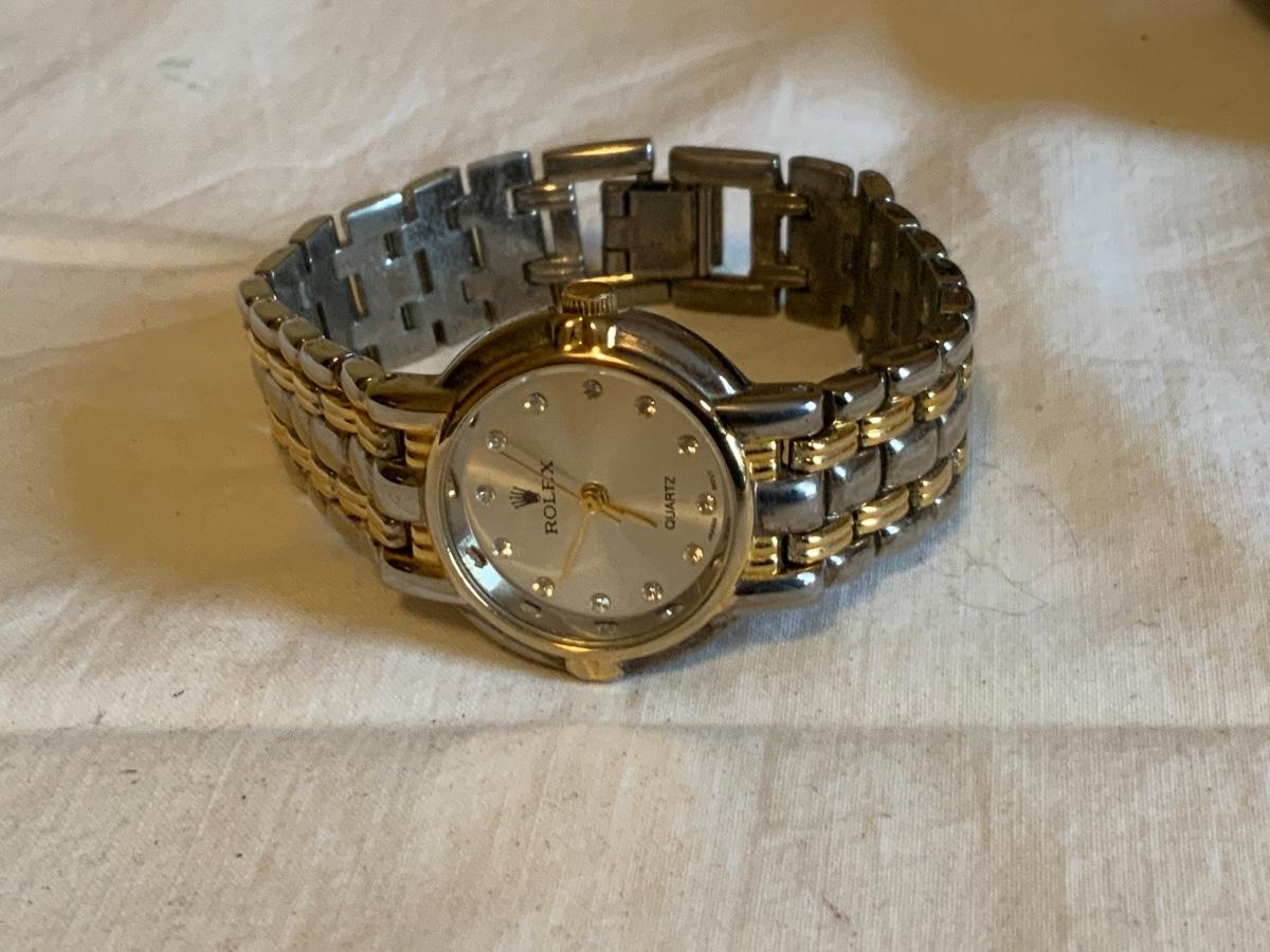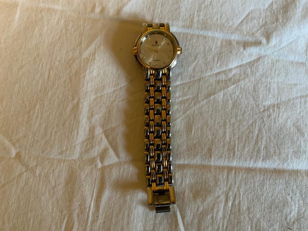 Nice Vintage Rhinestone Watch Marked ROLEX QUARTZ JAPAN MOVT on front. Back says stainless steel Japan MOVT. Not tested or verified to be a real Rolex. Please see pics for condition